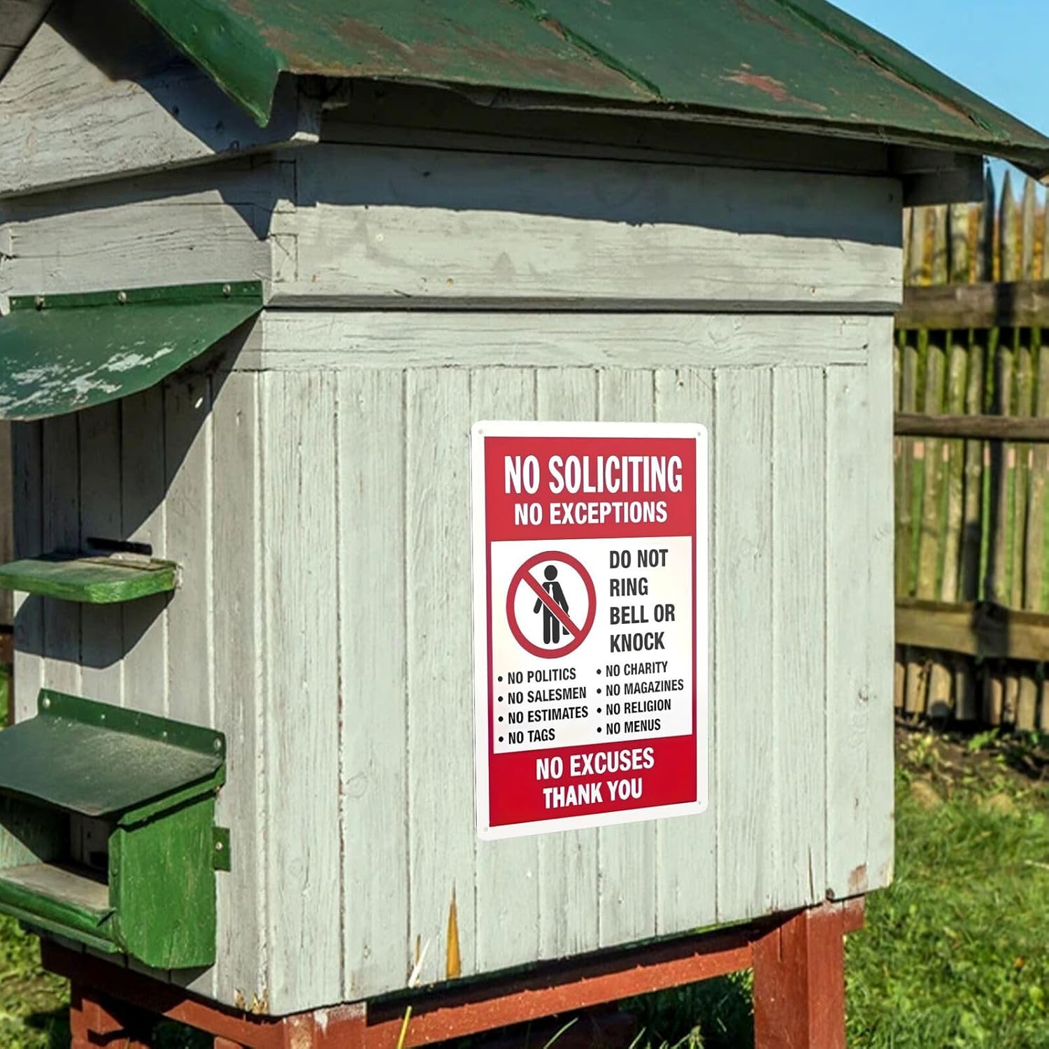 Funny 'No Soliciting No Exceptions' Metal Sign - Rust-Free Aluminum, Weatherproof, Easy Install with Pre-Drilled Holes - for Home & Business Doors, 8"x12"