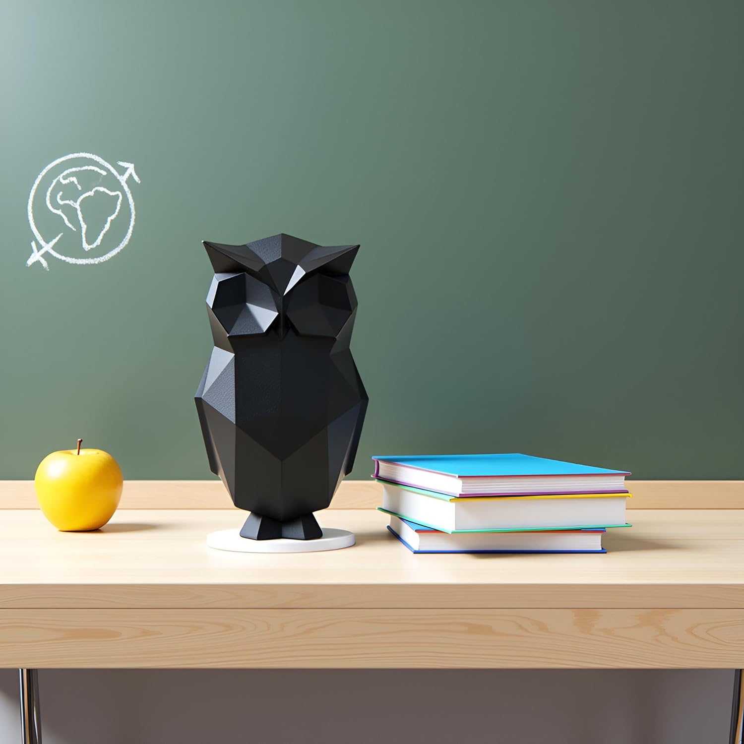 Black Geometric Owl Figurine - Premium Resin Small Decor for Home, Unique Gift for Owl Lovers & Housewarmings, 6.3 Inch Modern Animal Statue