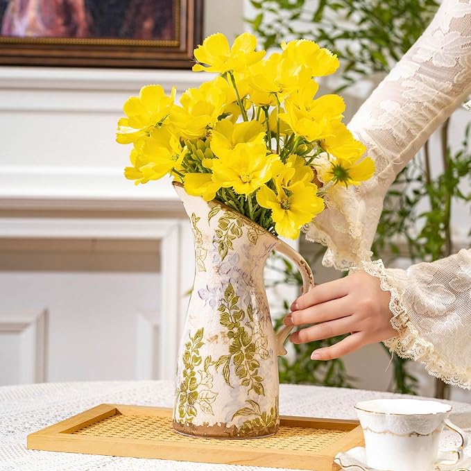 - Functional Handle & Stable Design: Featuring a sturdy curved handle for easy carrying and refilling, this pitcher vase combines practical elegance. Its balanced proportions and stable base make it a reliable decorative vase for everyday use as a charming kitchen accent or a standout living room decor element.