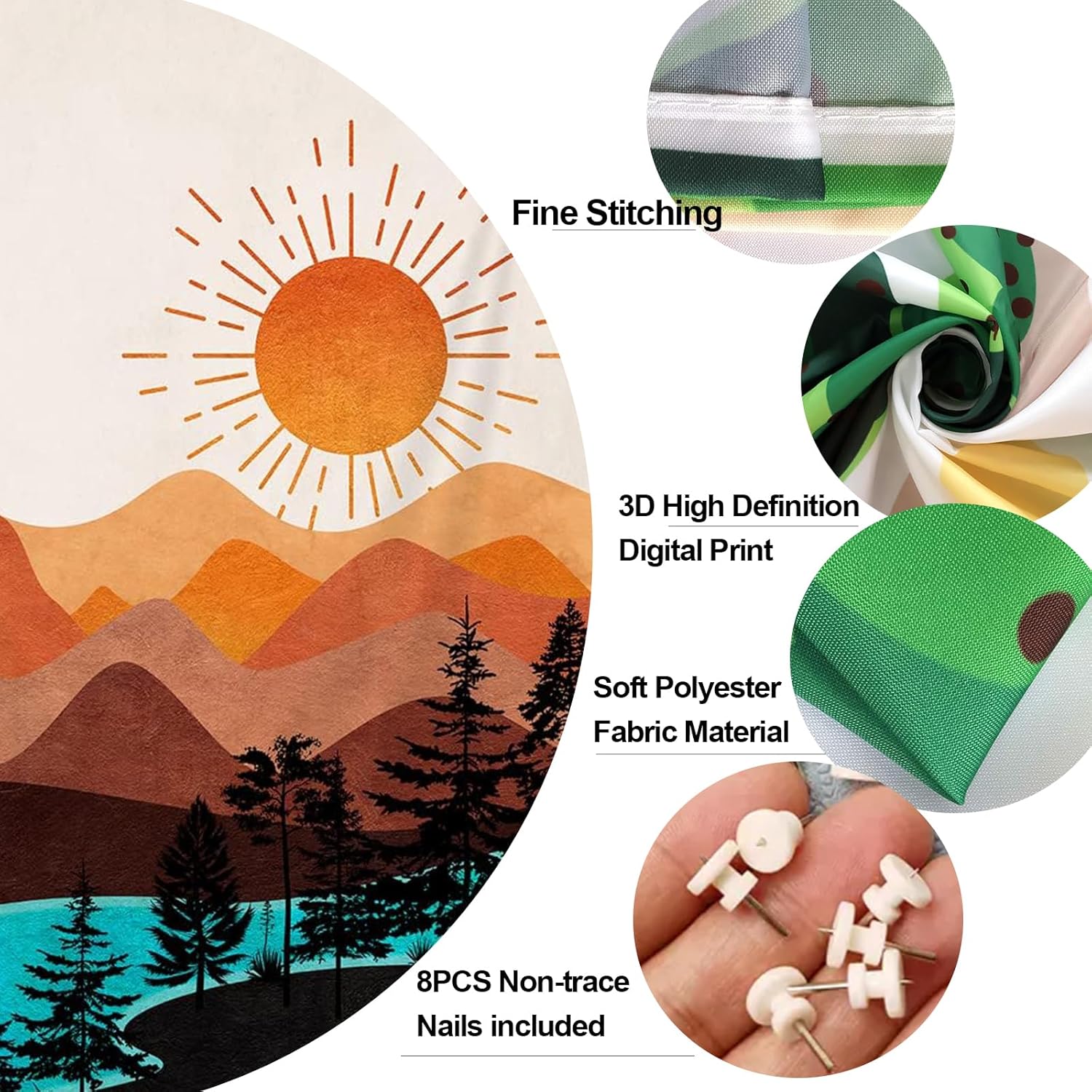 DYNH Boho Mountain Vertical Tapestry, Nature Forest Tree Lake Sun Tapestries, Bohemian Minimalist Mid Century Desert Tapestry Wall Hanging for Bedroom College Dorm Asthetic Home Decor,60X71IN