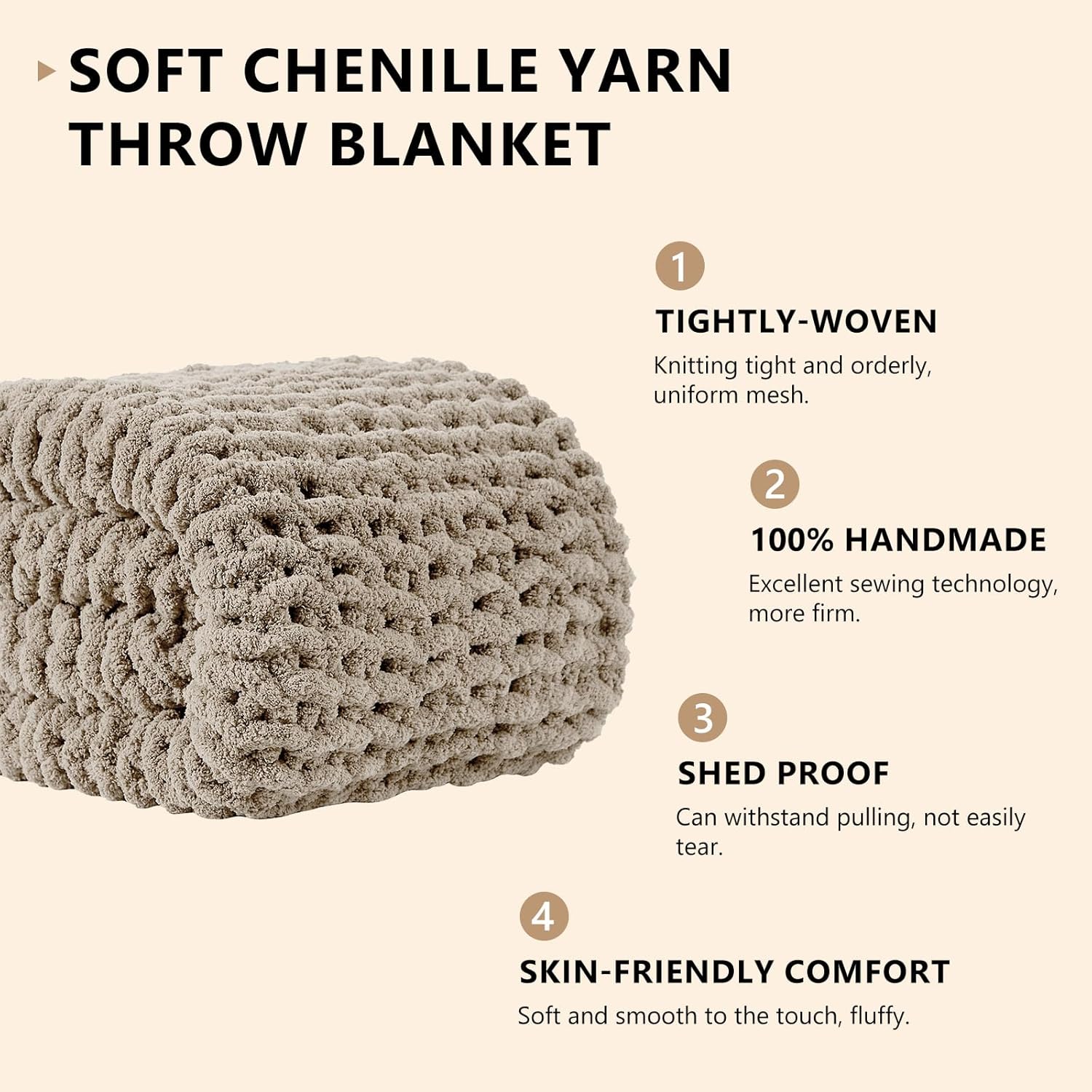 - 100% Handmade Chunky Knit Blanket: Our knit blanket throw is made from 100% hand-woven fabric with premuim Chenille yarn, excellent handcrafted knitting improves yarn density to create a warm and soft touch, full body hug to immerse you in tenderness