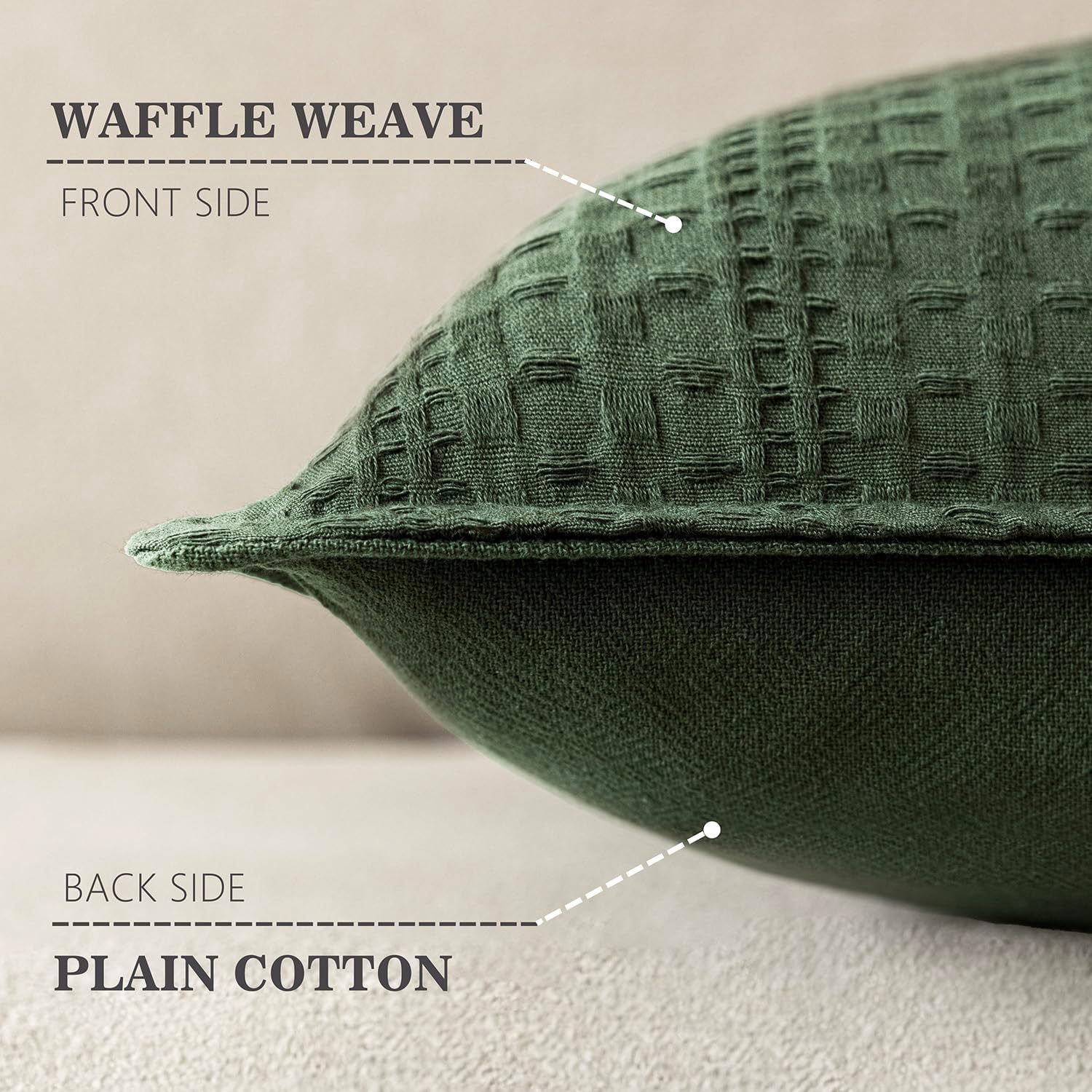 Foindtower Set of 2 Decorative Cotton Waffle Weave Throw Pillow Covers Euro Shams Cushion Covers Accent European Pillowcase for Bed Couch Sofa Bedroom Living Room Home Decor 18×18 Inch Dark Green