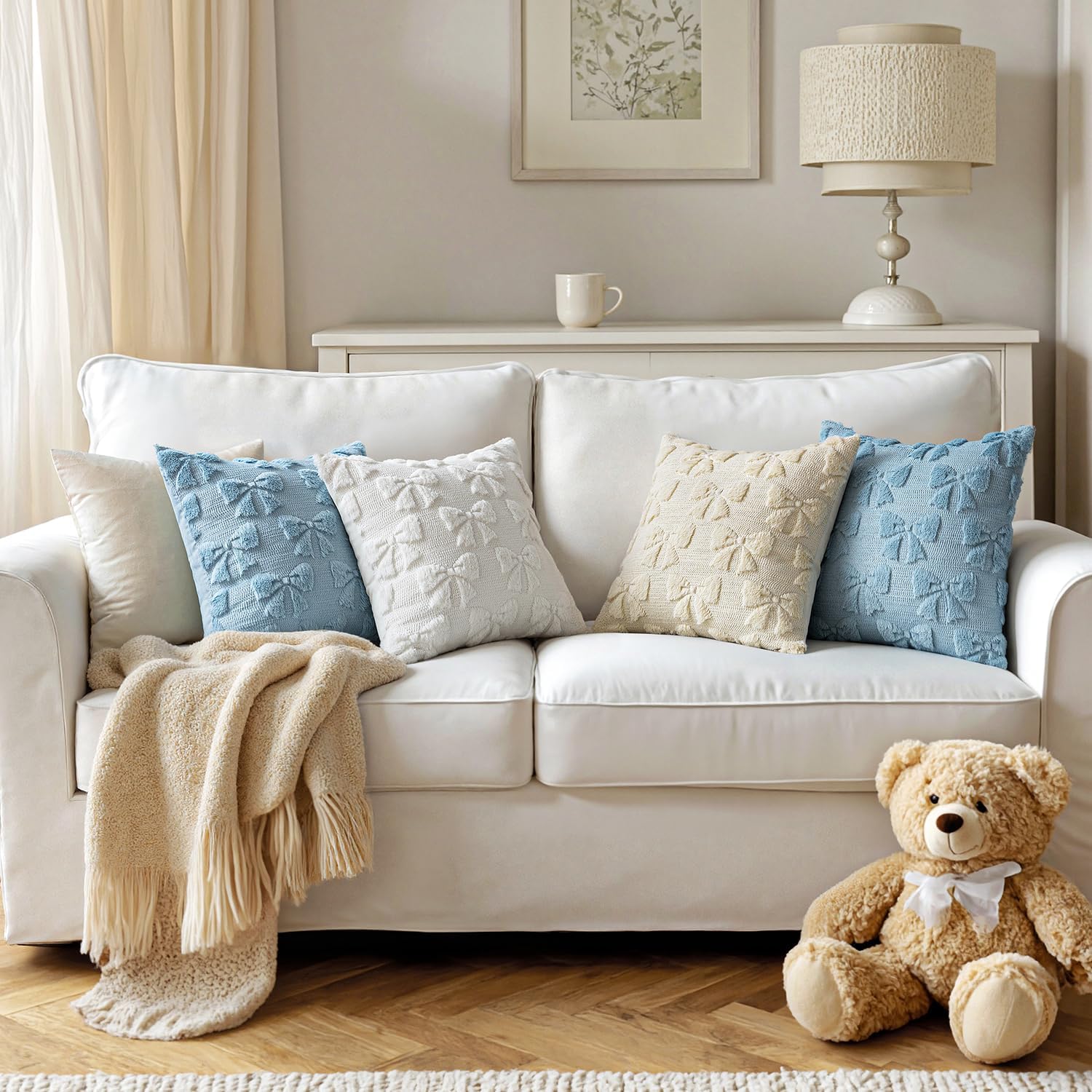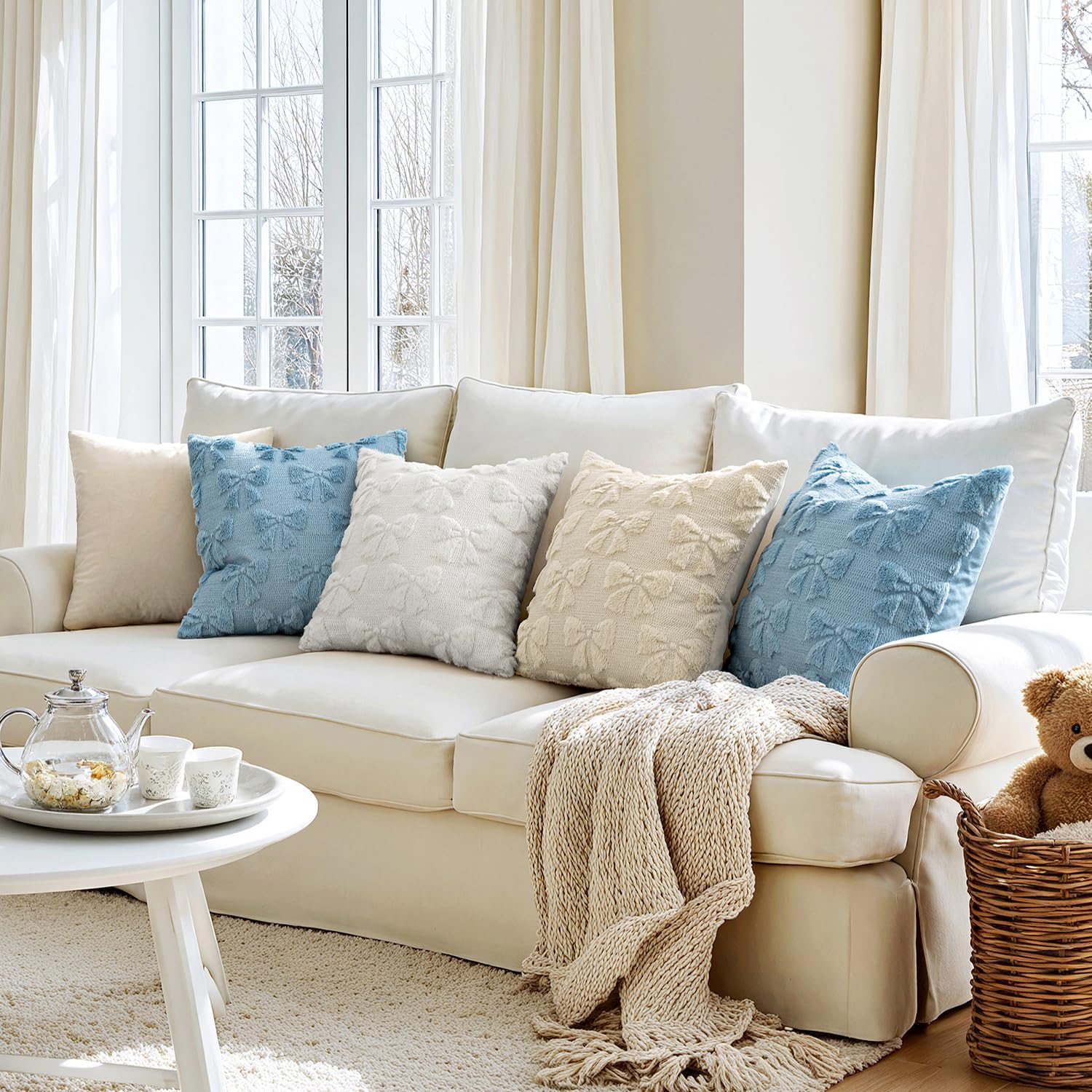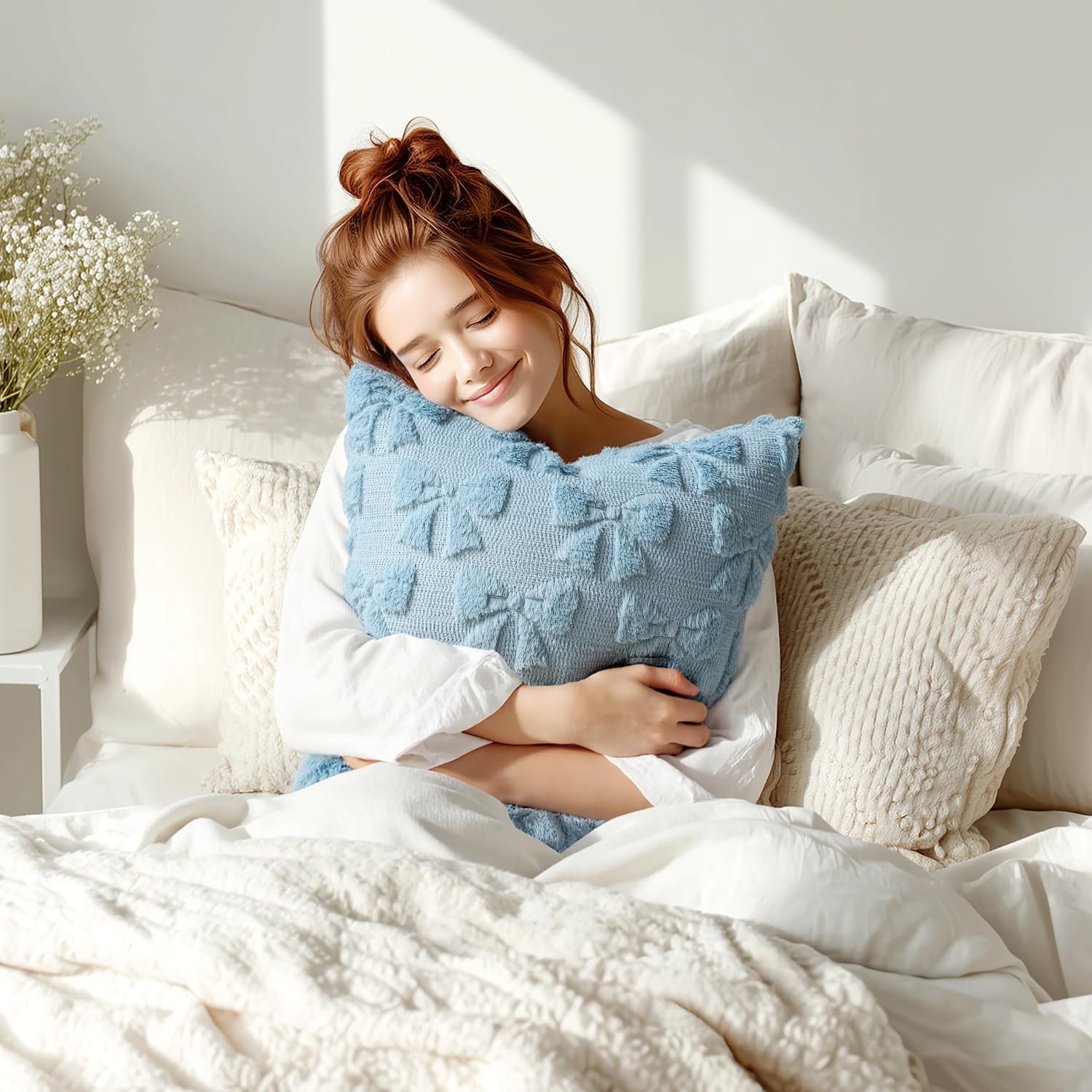 MIULEE Blue Bow Pillow Covers Coquette Room Decor Aesthetic Set of 2 Decorative Cute Girl Throw Pillow Soft Plush Faux Pillowcase for Girl Bed Couch Sofa,18x18 Inch