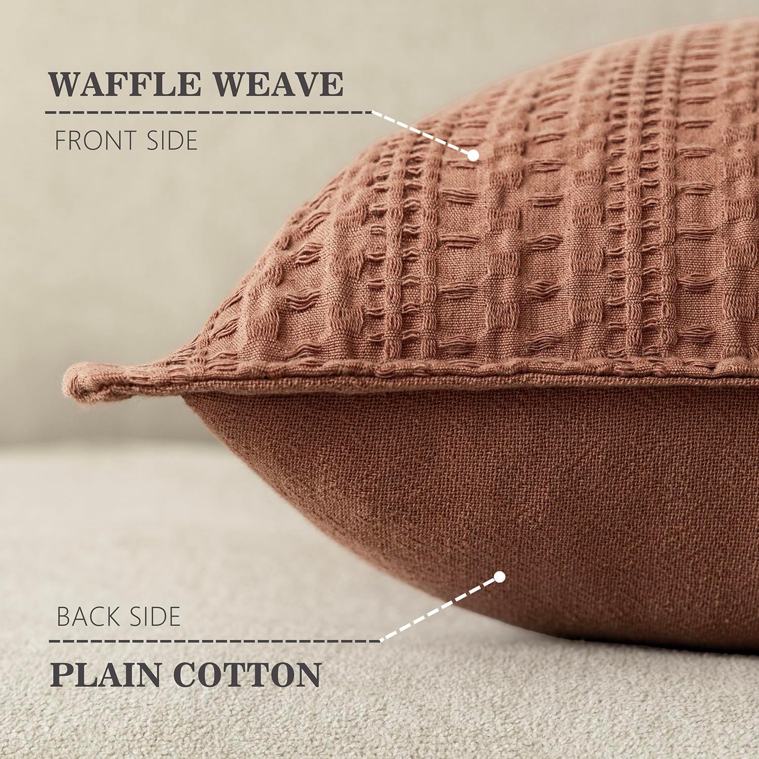 Foindtower Set of 2 Decorative Cotton Waffle Weave Throw Pillow Covers Euro Shams Cushion Covers Accent European Pillowcase for Bed Couch Sofa Bedroom Living Room Home Decor 20×20 Inch Coral Pink