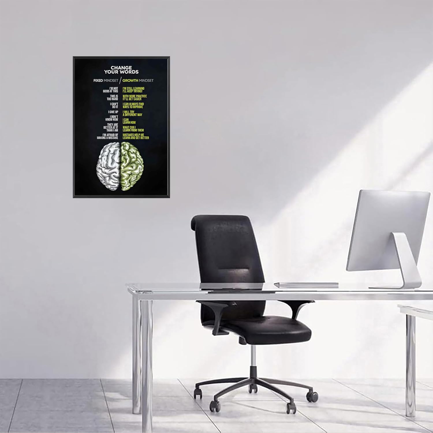 Growth Mindset Poster Positive Affirmation Wall Art Inspirational Mental Health Prints Painting For Living Room School Office Wall Decor 24x36in Framed