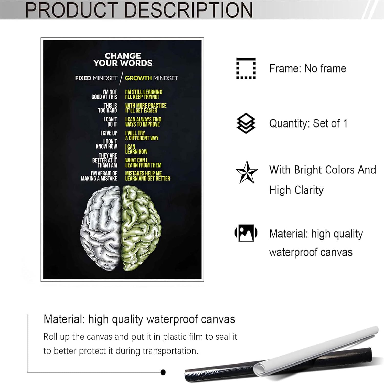 - Inspirational and Motivational:** This Growth Mindset Poster is designed to inspire and motivate, making it the perfect addition to any room in your home, office, or living space.
