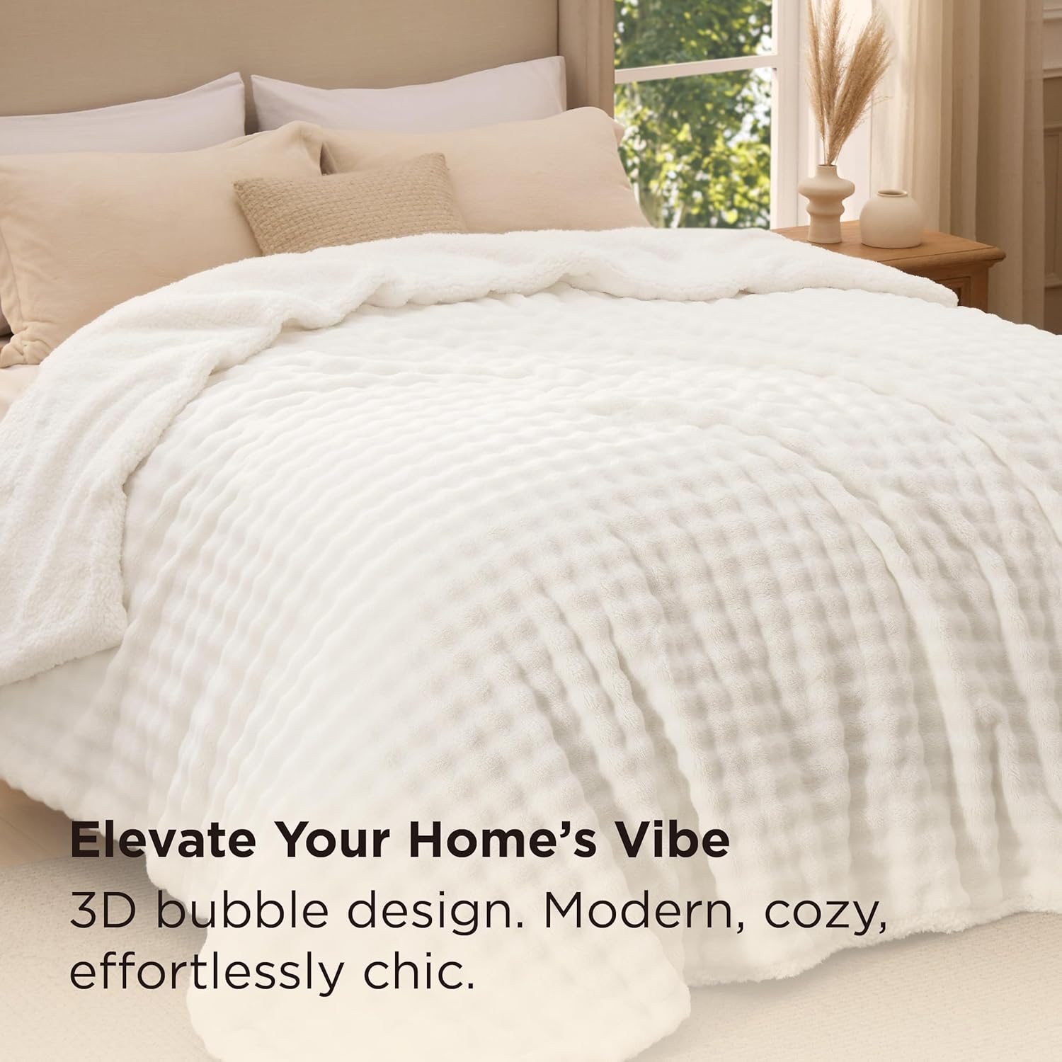 Bedsure Bubble Sherpa Blanket King Size for Bed - Fuzzy Fleece Thick Warm Christmas Blanket for Winter, GentleSoft Cozy Plush Throw Gift for Women, Room Decor, Ivory, 108x90 Inches