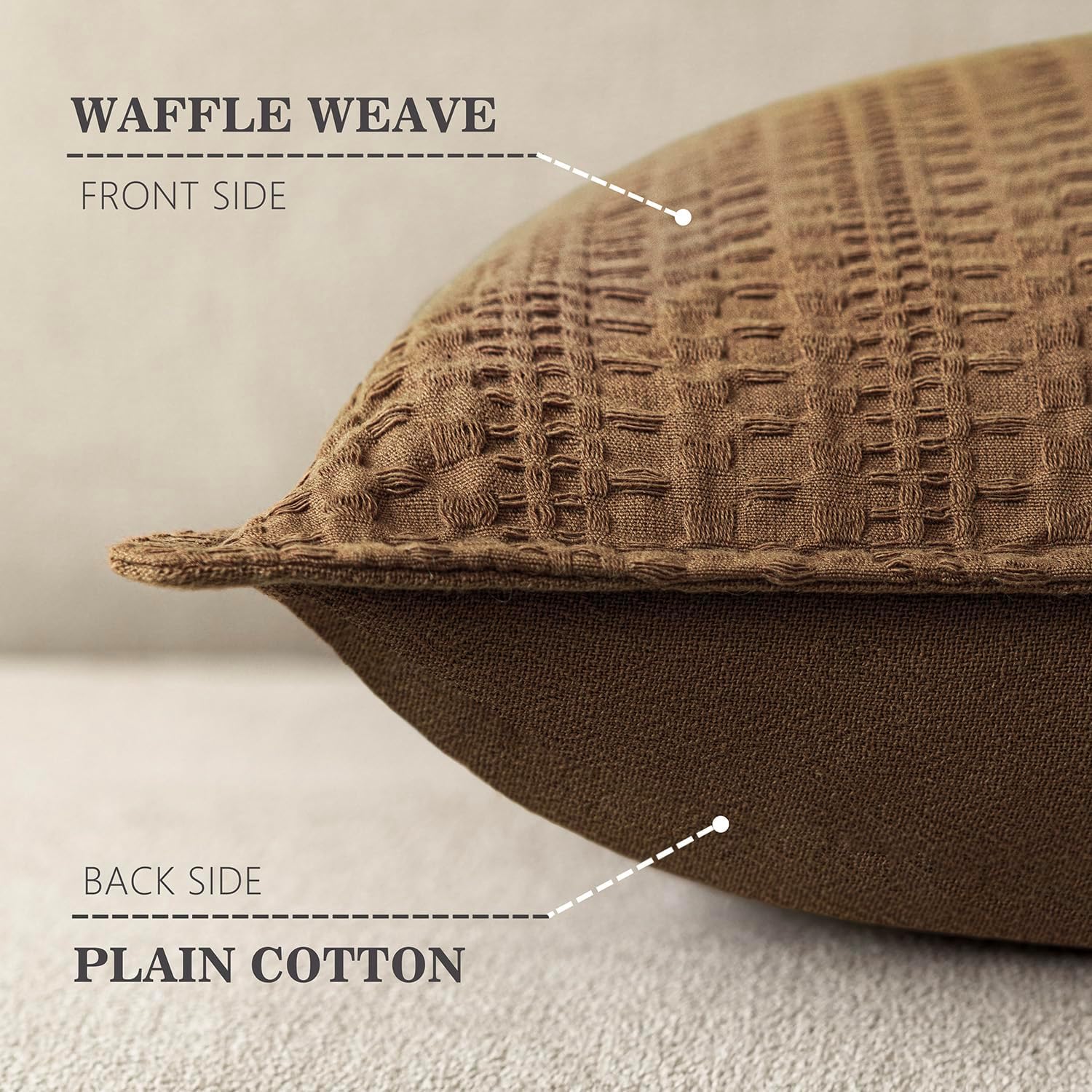 Foindtower Set of 2 Decorative Cotton Waffle Weave Throw Pillow Covers Euro Shams Cushion Covers Accent European Pillowcase for Bed Couch Sofa Bedroom Living Room Home Decor 22×22 Inch Orange Brown