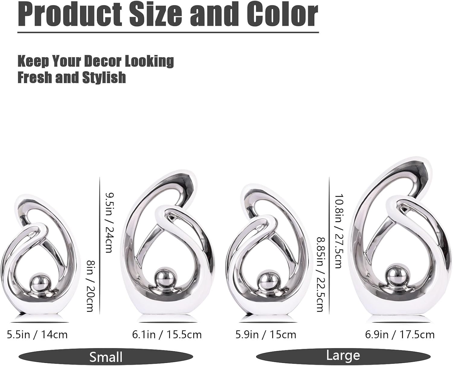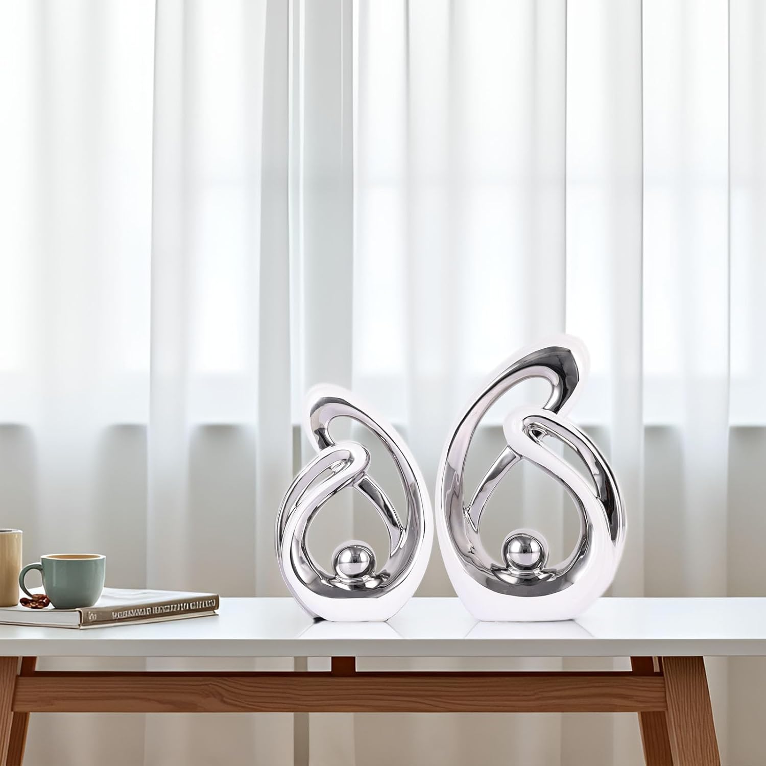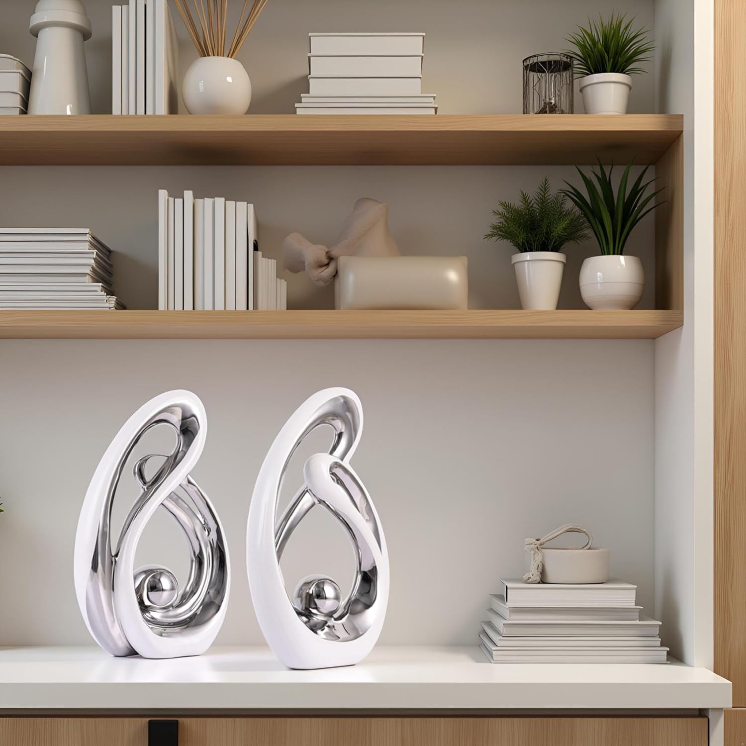 Home Decor Accent,Porcelain Art Mid Century Bookshelf Decorations,Gold Centerpieces for Tables,Abstract Ceramic Statue Sculpture for Coffee Table Mantel Tv Stand Centerpieces (White Silver, Small)