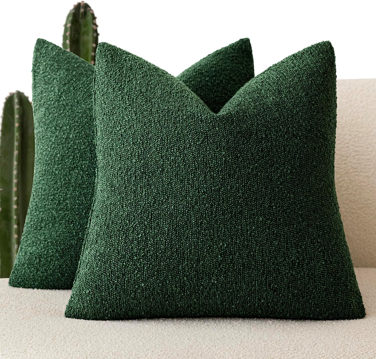 Foindtower Set of 2, Decorative Textured Boucle Throw Pillow Covers Accent Solid Pillow Cases Neutral Cozy Couch Cushion Case for Chair Sofa Bedroom Living Room Home Decor 24x24 Inch Pine Green