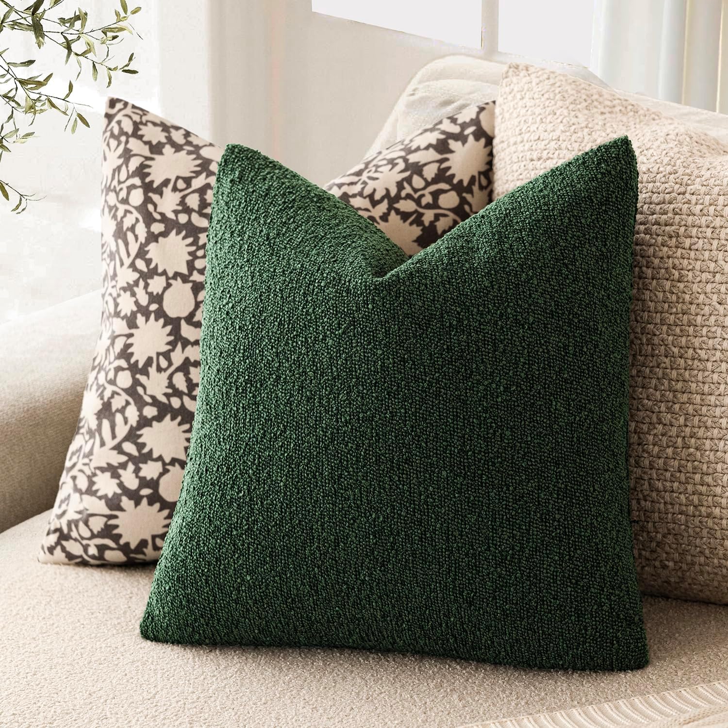 Foindtower Pack of 2 Textured Boucle Throw Pillow Covers Neutral Accent Solid Decorative Pillow Cases Cozy Woven Couch Cushion Case for Sofa Bedroom Living Room Home Decor 20x20 Inch Pine Green