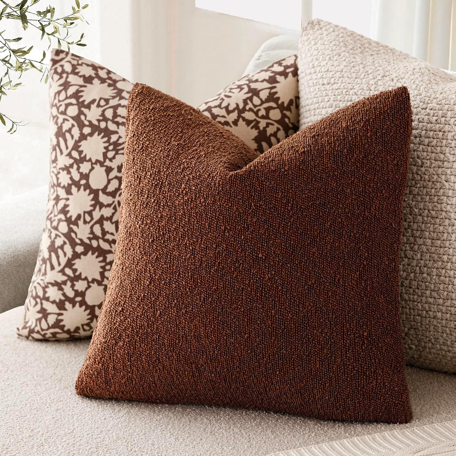 Foindtower Decorative Textured Boucle Throw Pillow Covers Accent Solid Pillow Cases Neutral Soft Cozy Couch Cushion Case for Chair Sofa Bedroom Living Room Home Decor 16x16 Inch,1PC,Red Taupe