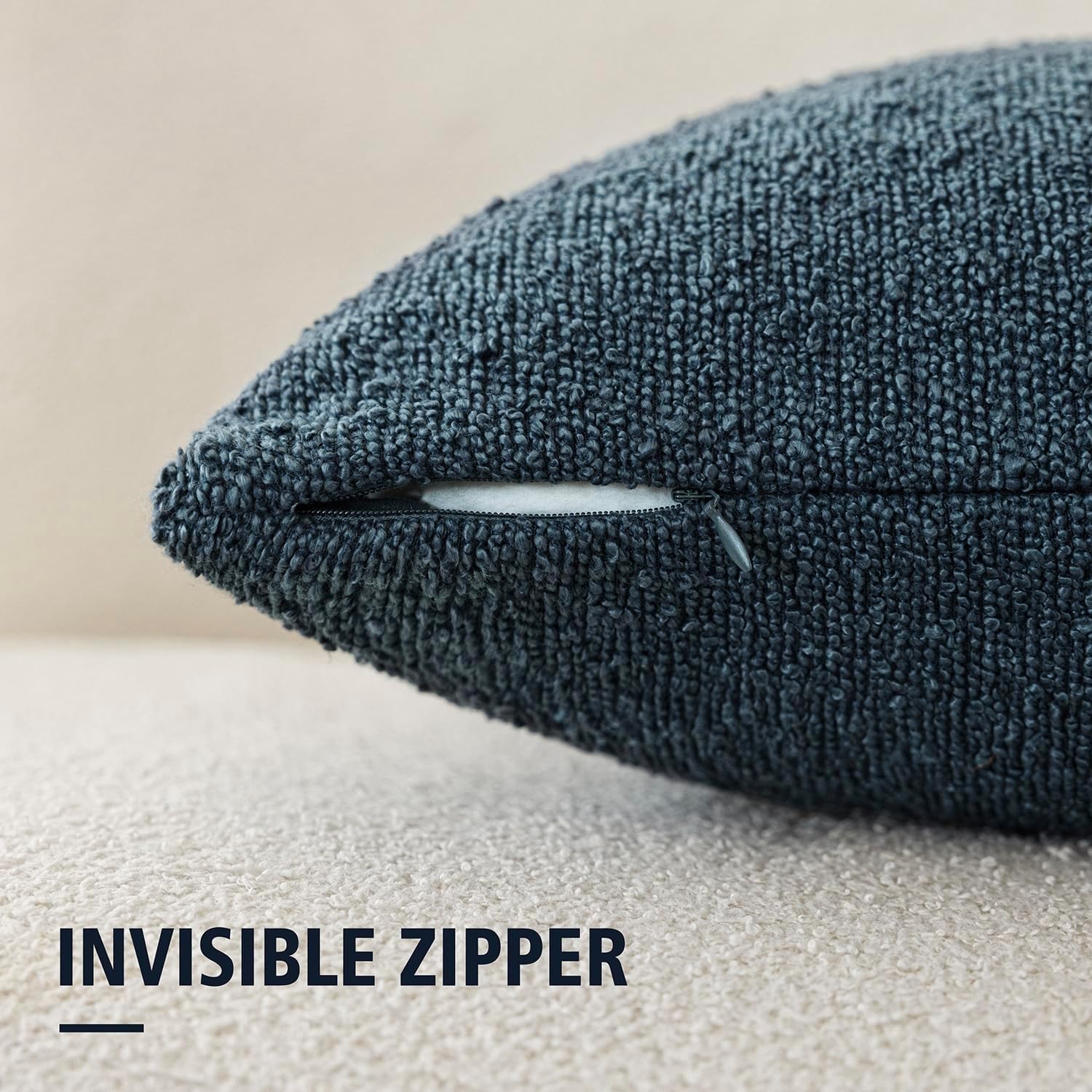 Foindtower Decorative Textured Boucle Throw Pillow Covers Accent Solid Pillow Cases Neutral Soft Cozy Couch Cushion Case for Chair Sofa Bedroom Living Room Home Decor 20x20 Inch,1PC,Dark Blue