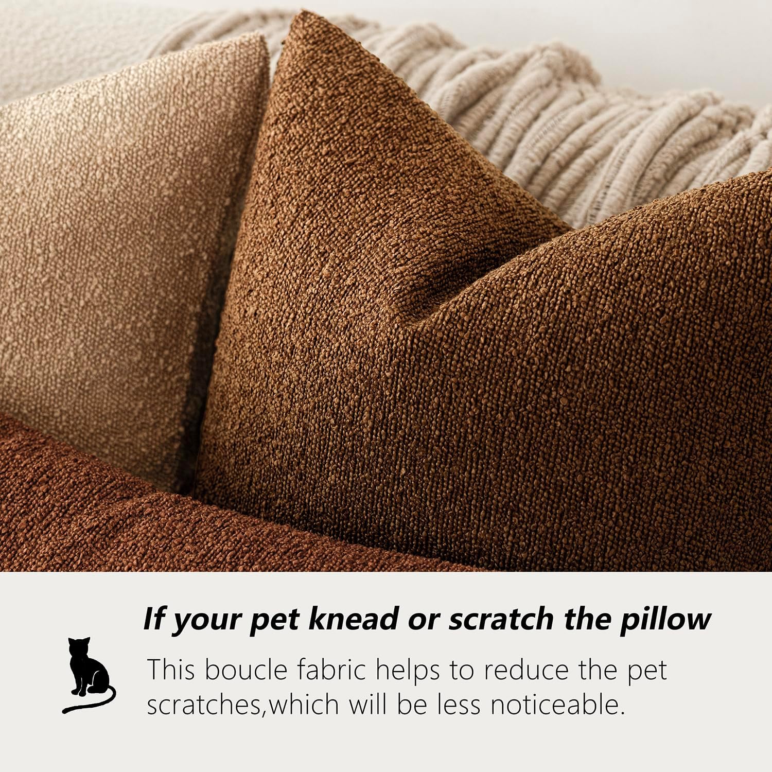 Foindtower Pack of 2 Modern Textured Boucle Throw Pillow Covers Accent Solid Decorative Pillow Cases Cozy Woven Couch Cushion Case for Chair Sofa Bedroom Living Room Home Decor 20x20 Inch Hazel Brown