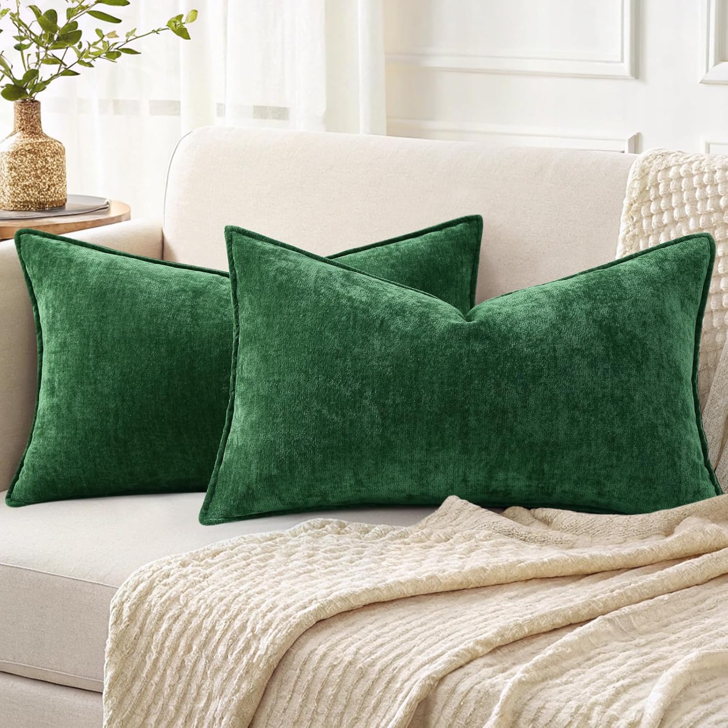 decorUhome Christmas Couch Throw Pillow Covers 12x20 Set of 2, Decorative Soft Euro Neutral Chenille Lumbar Pillow Covers with Elegant Design for Sofa Bed Living Room Home Decor, Green