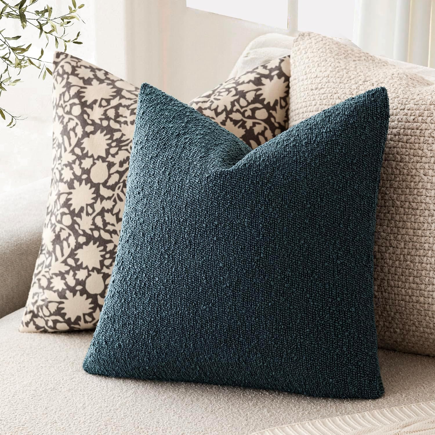 Foindtower Decorative Textured Boucle Throw Pillow Covers Accent Solid Pillow Cases Neutral Soft Cozy Couch Cushion Case for Chair Sofa Bedroom Living Room Home Decor 22x22 Inch,1PC,Dark Blue