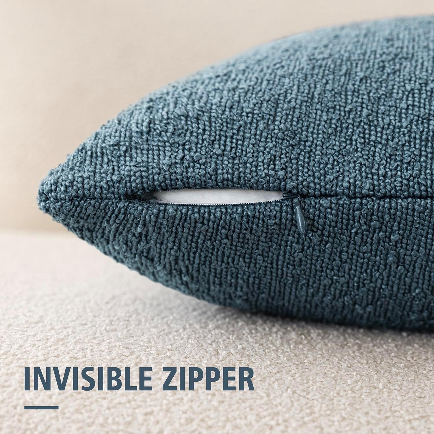 Foindtower Decorative Textured Boucle Throw Pillow Covers Accent Solid Lumbar Pillow Cases Neutral Soft Couch Cushion Case for Chair Sofa Bedroom Living Room Home Decor 12x20 Inch,1PC,Misty Blue