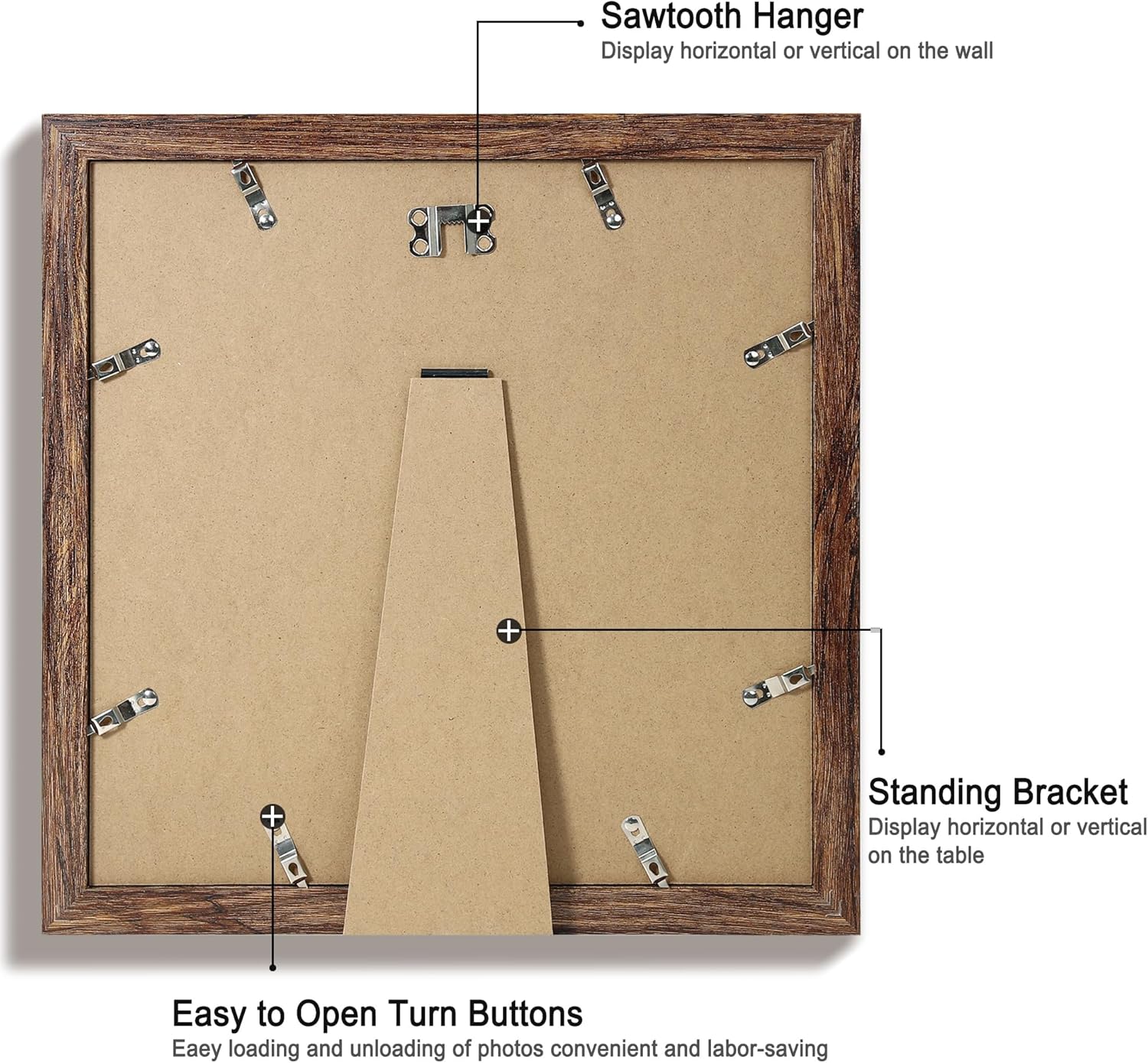 - Multi Frames Collage Set: Includes 4 frames in the same size. Perfectly fits 10x10 inch pictures with mat or 12x12 inch without mat. The frame opening display size is 0.5 inches smaller than the photo size for secure mounting.