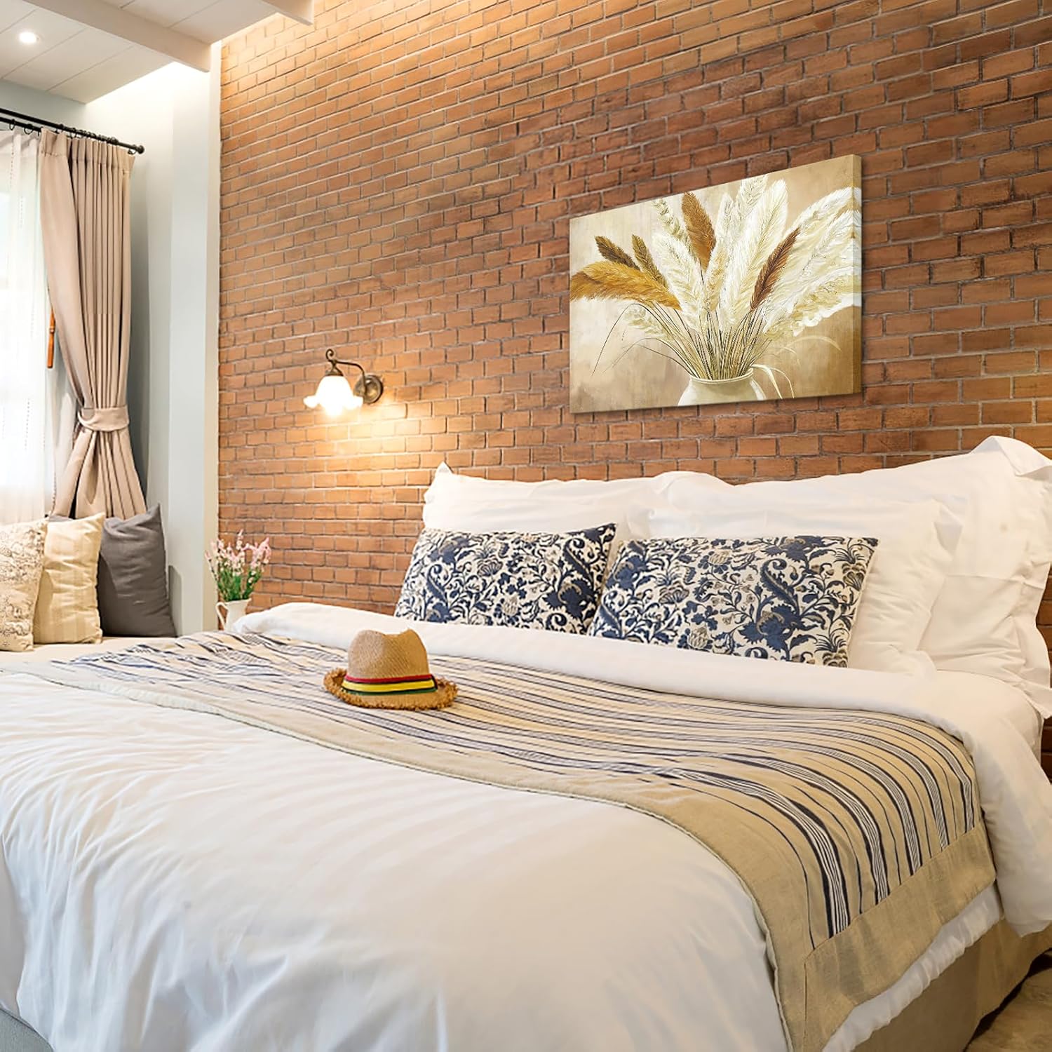 KREATIVE ARTS Vintage Pampas Grass Wall Art 24x36 Inch Boho Botanical Dried Flower Canvsa Print Neutral Beige Wall Decor for Living Room Bedroom Farmhouse Entryway Rustic Home Artwork Ready to Hang