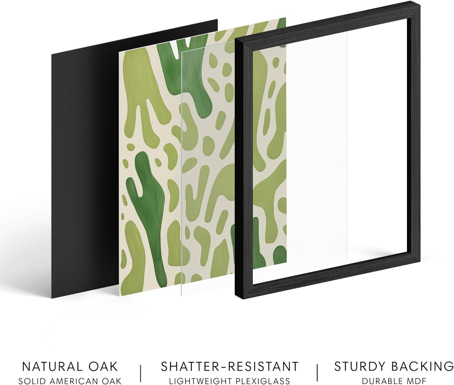 HAUS AND HUES Modern Abstract Wall Art - Blue and Green Living Room Art, Modern Artwork for Walls, Minimalist Picture for Living Room(Green Pattern, Black Frame, 16x20)