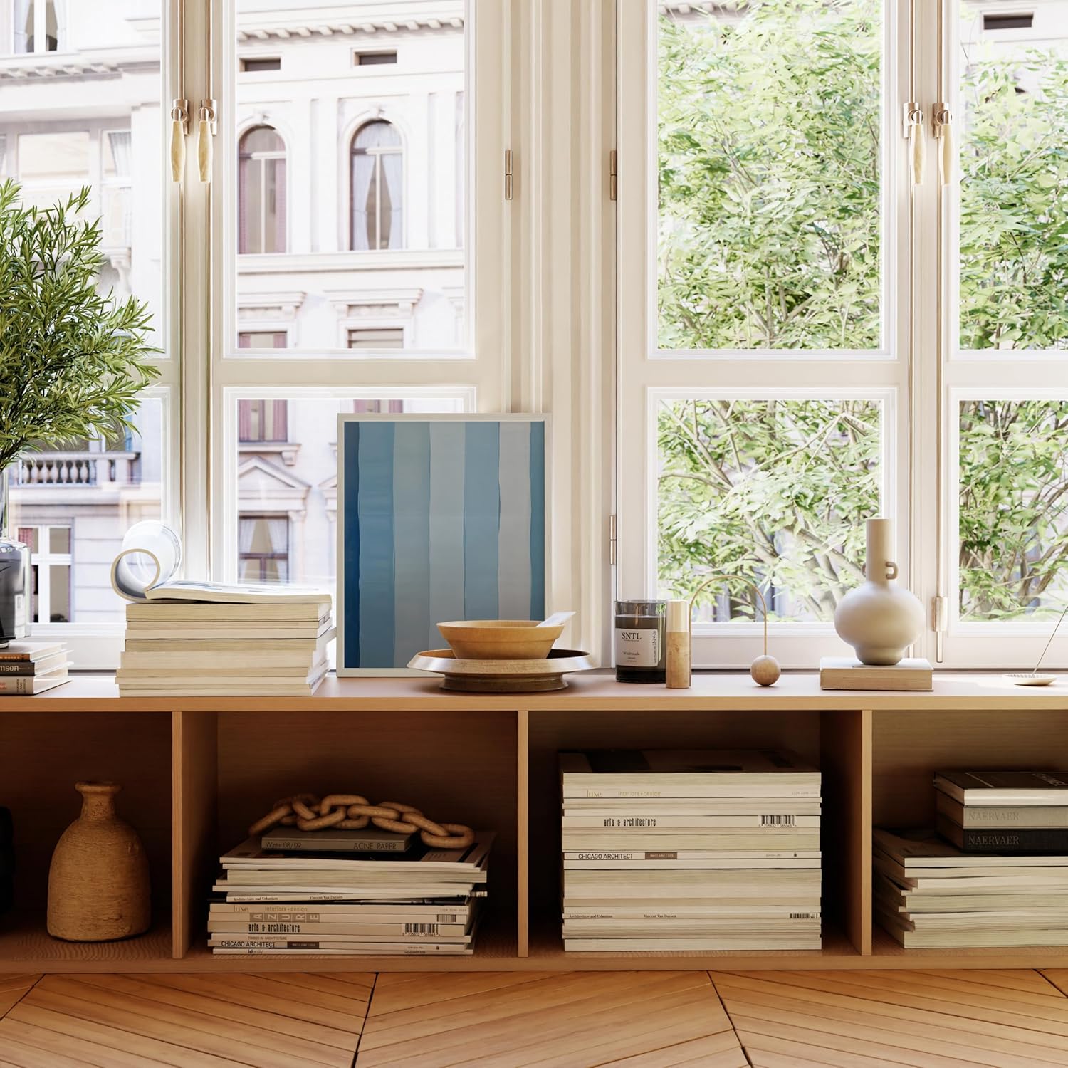 HAUS AND HUES Modern Abstract Wall Art - Blue and Green Living Room Art, Modern Artwork for Walls, Minimalist Picture for Living Room(Painted Stripes, White Frame, 16x20)