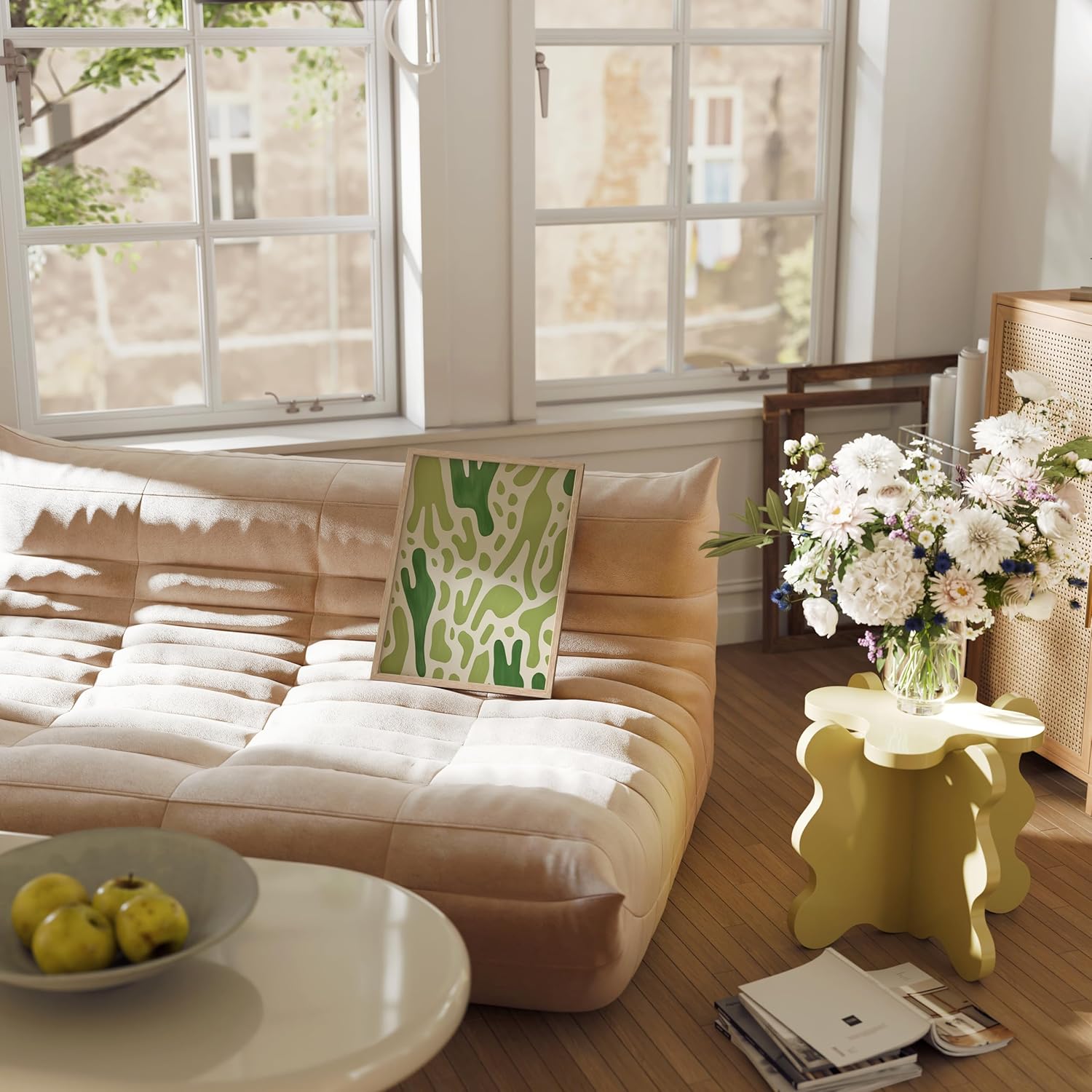 HAUS AND HUES Modern Abstract Wall Art - Blue and Green Living Room Art, Modern Artwork for Walls, Minimalist Picture for Living Room(Green Pattern, Beige Frame, 12x16)