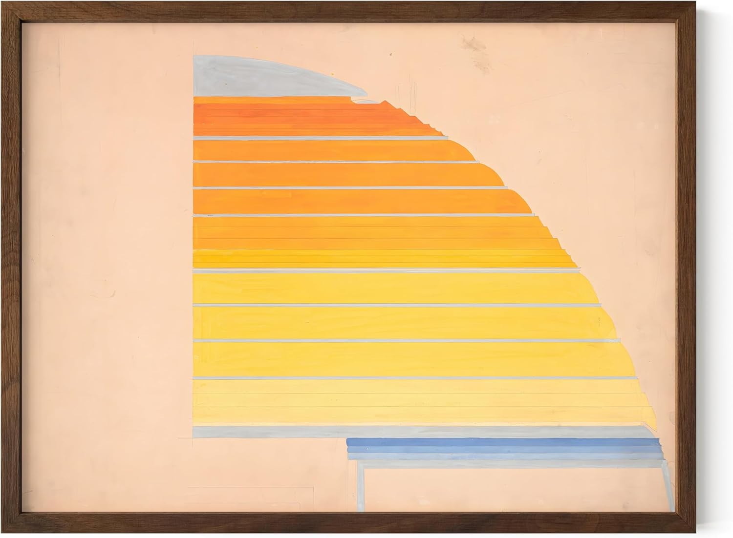 HAUS AND HUES Colorful Abstract Wall Art - Minimalist Retro Picture for Living Room Decor, Red and Pink Modern Wall Art Painting (Winold Reiss, Walnut Frame, 12x16)