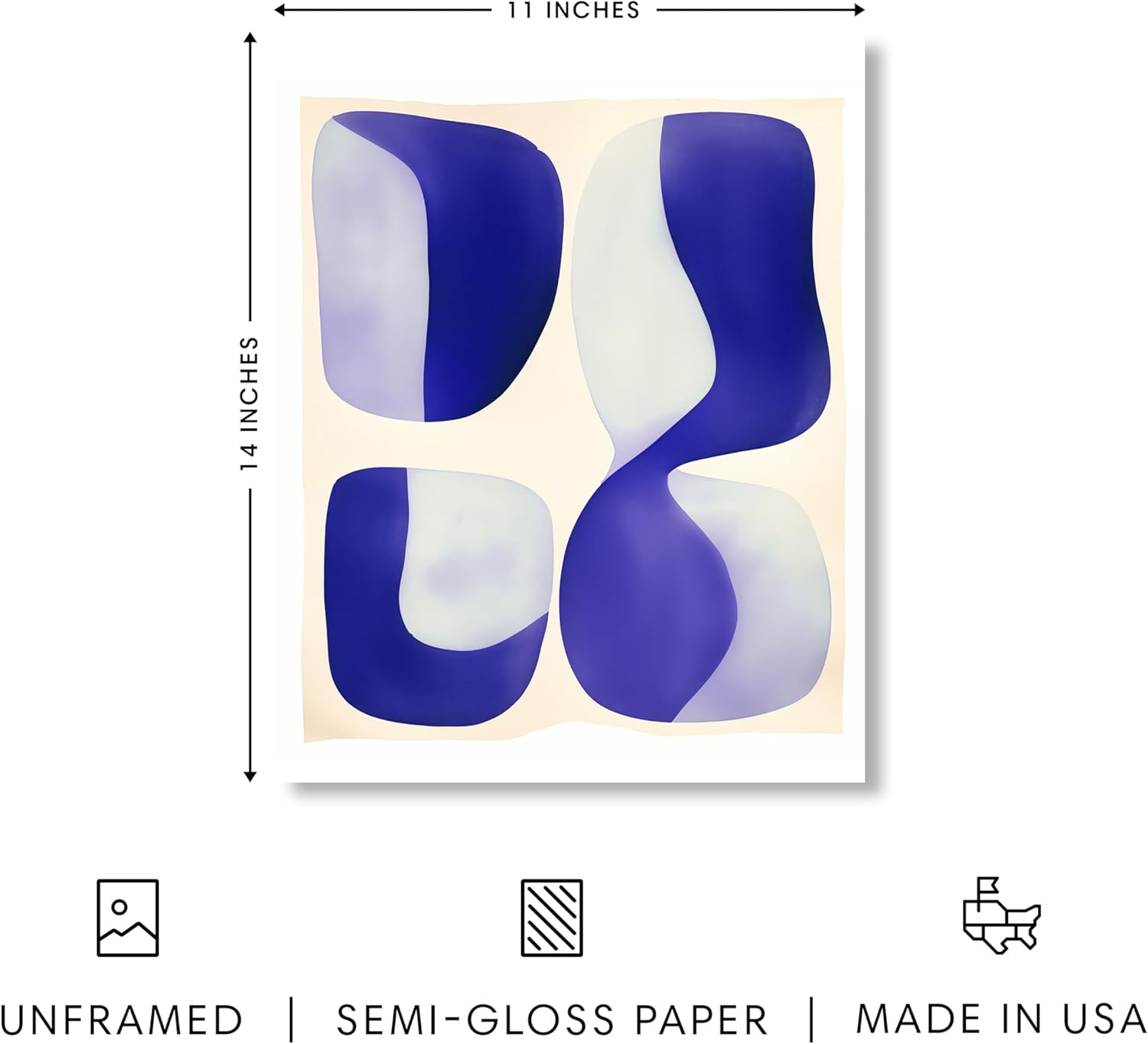 HAUS AND HUES Modern Abstract Wall Art - Blue and Green Living Room Art, Modern Artwork for Walls, Minimalist Picture for Living Room(Blue Tribal Shapes 2, Unframed, 11x14)