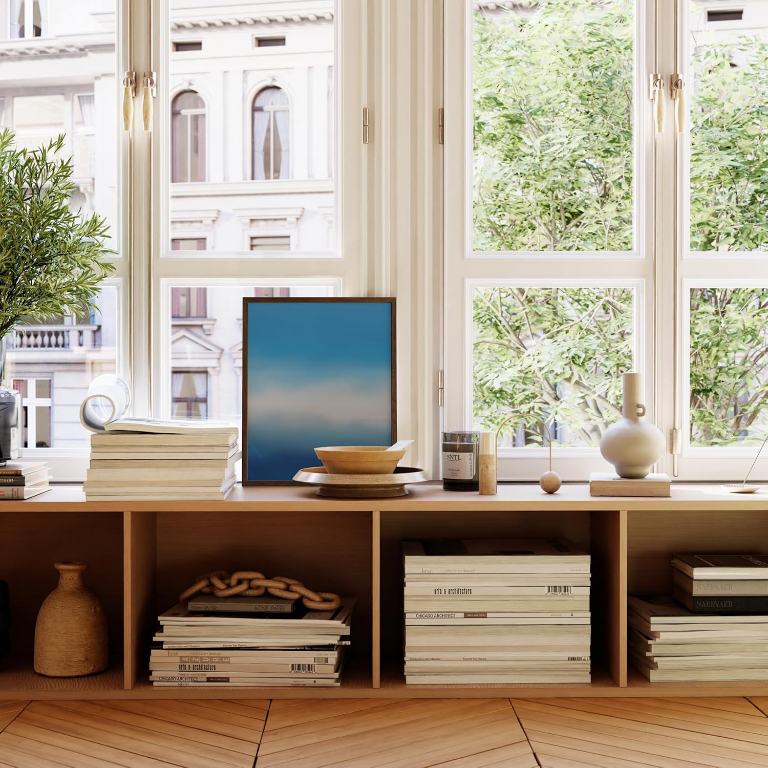 HAUS AND HUES Modern Abstract Wall Art - Blue and Green Living Room Art, Modern Artwork for Walls, Minimalist Picture for Living Room(Blue Tie-Dye, Walnut Frame, 16x20)