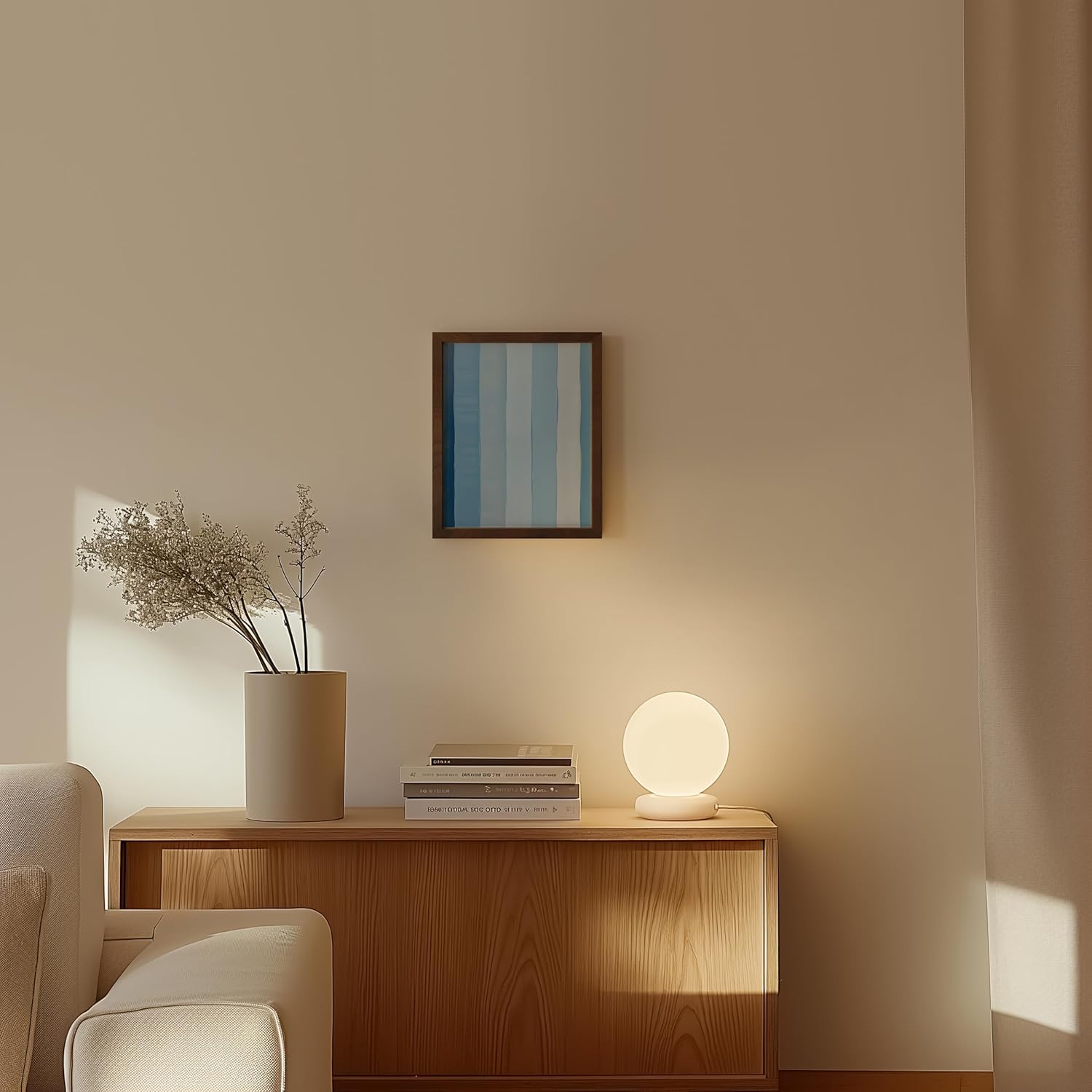 HAUS AND HUES Modern Abstract Wall Art - Blue and Green Living Room Art, Modern Artwork for Walls, Minimalist Picture for Living Room(Painted Stripes, Walnut Frame, 8x10)