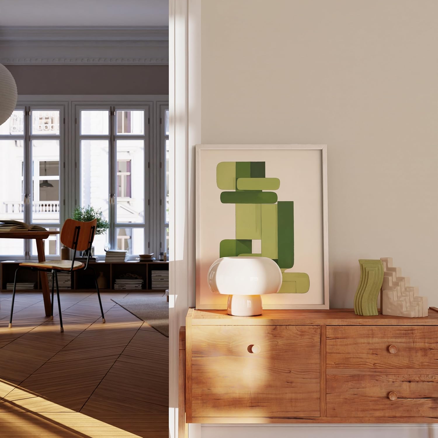 HAUS AND HUES Modern Abstract Wall Art - Blue and Green Living Room Art, Modern Artwork for Walls, Minimalist Picture for Living Room(Green Geometric, White Frame, 16x20)