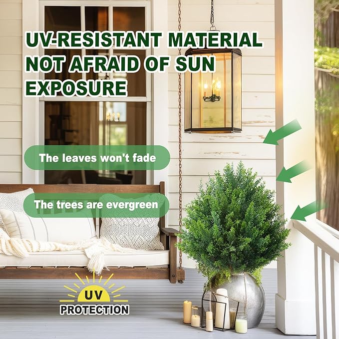- 【Versatile Decoration】 Perfect for entryways, porches, gardens, and offices, this artificial outdoor shrubs seamlessly blends into any setting, adding elegance and greenery year-round.