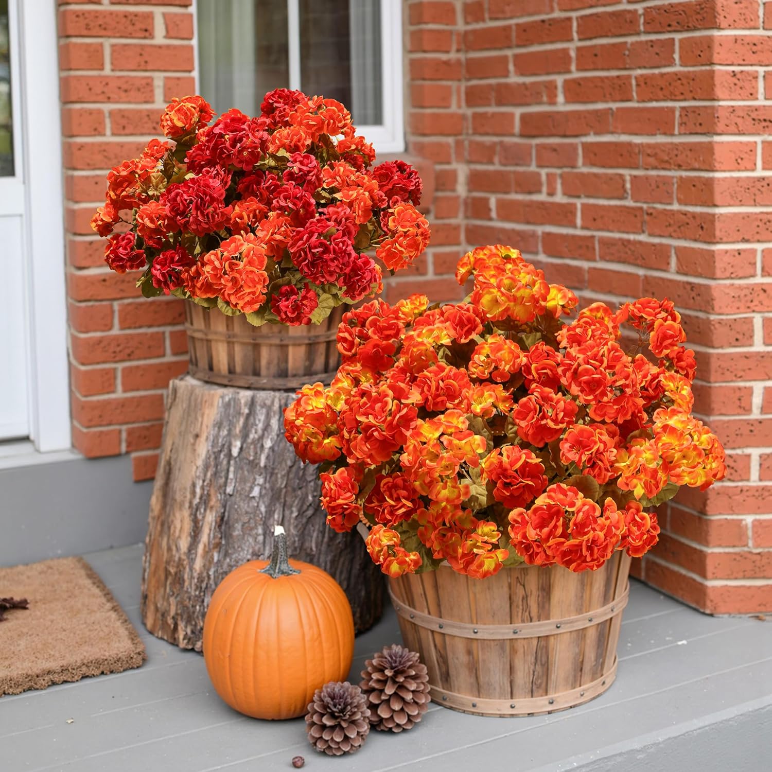 - Low Maintenance: Are you tired of dying flowers? Then our faux geraniums for outdoor planters will be perfect for you. Unlike fresh flowers which require everyday upkeep, the faux geraniums can be placed and reusable in many settings for a long period without any care. These artificial flowers do not require watering or weeding. Bringing beauty and good mood to your day, they are a great addition to your autumn displays!