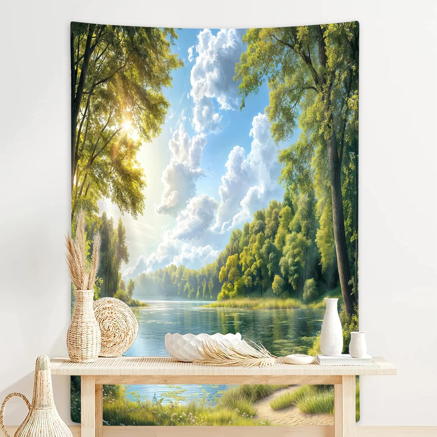 DYNH Nature Lake Forest Tapestry,Park Scenery Water Tree Sky Cloud Wall Tapestries,Countryside Field Landscape Vertical Wall Hanging for Classroom Bedroom Living Room Dorm Office Aesthetic,60X71IN