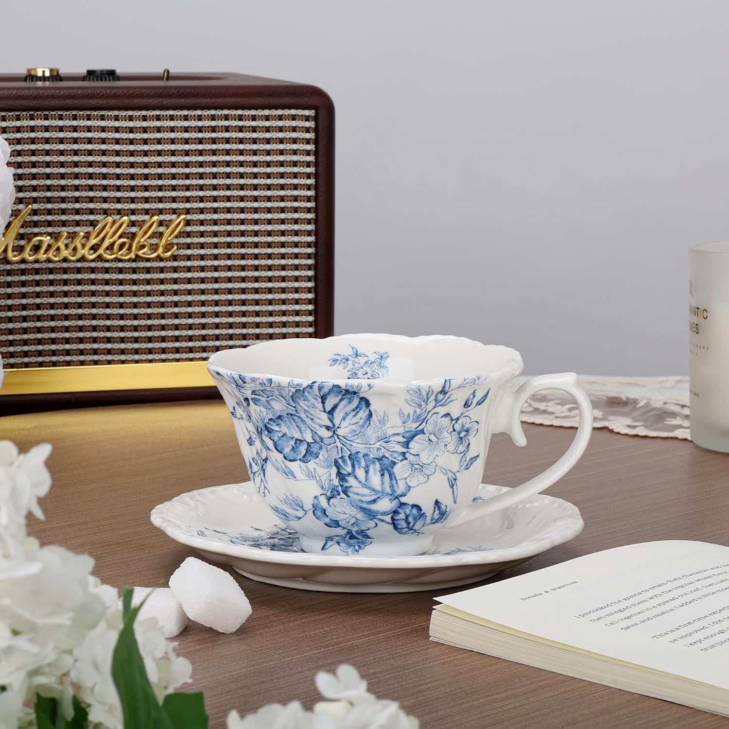 - Exquisite Design: Adorned with delicate blue flowers, this relief tea cup and saucer set brings a touch of elegant. The unique vintage design make it a perfect addition to your tea time ritual or home décor