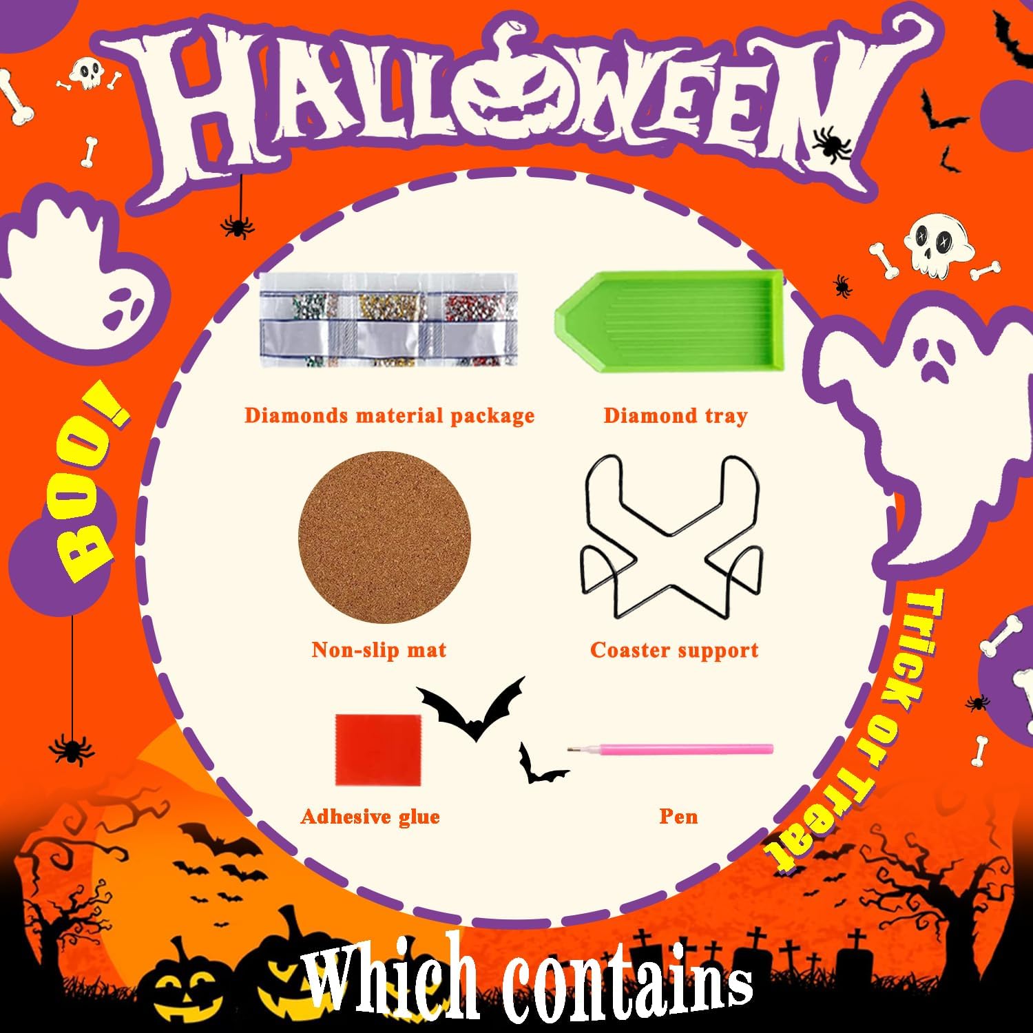 - widely Application: Halloween diamond painting coasters can be used for a variety of purposes, as sparkly diamon art to your friends and family,for kids, trick or treat for all holidays, like Birthday, Mother's Day, Christmas,and Diamond Art Coasters Set Protect your desktop and add color to your furniture,adult diamond art coasters fits all types of cups and beverage containers, such as coffee, milk, tea, beer,and juice...
