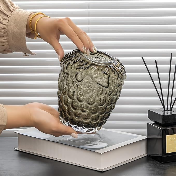 - 🌷【Product List】Grape-shaped transparent dark gray bubble round vase, size: 6 inches in diameter * 6.7 inches in height, glass material never fades. Due to the light source, there may be a slight color difference between the actual object and the picture, and the actual object will appear transparent dark gray or transparent black, please understand. The vase does not contain flowers.