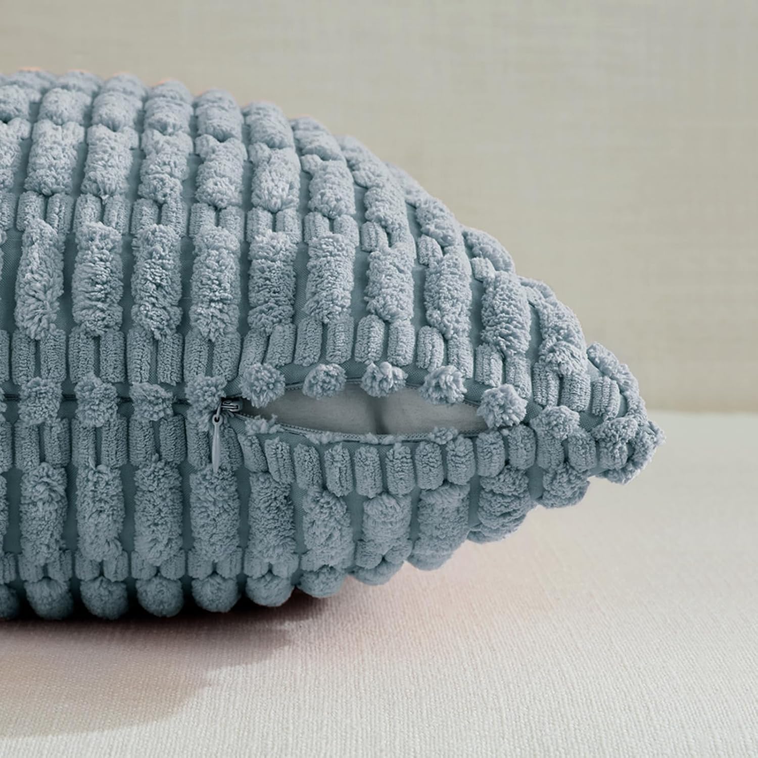 Fancy Homi 4 Packs Boho Light Blue Decorative Throw Pillow Covers 18x18 Inch for Couch Bed Sofa, Rustic Modern Farmhouse Home Decor, Soft Plush Corduroy Cute Square Cushion Case 45x45 cm