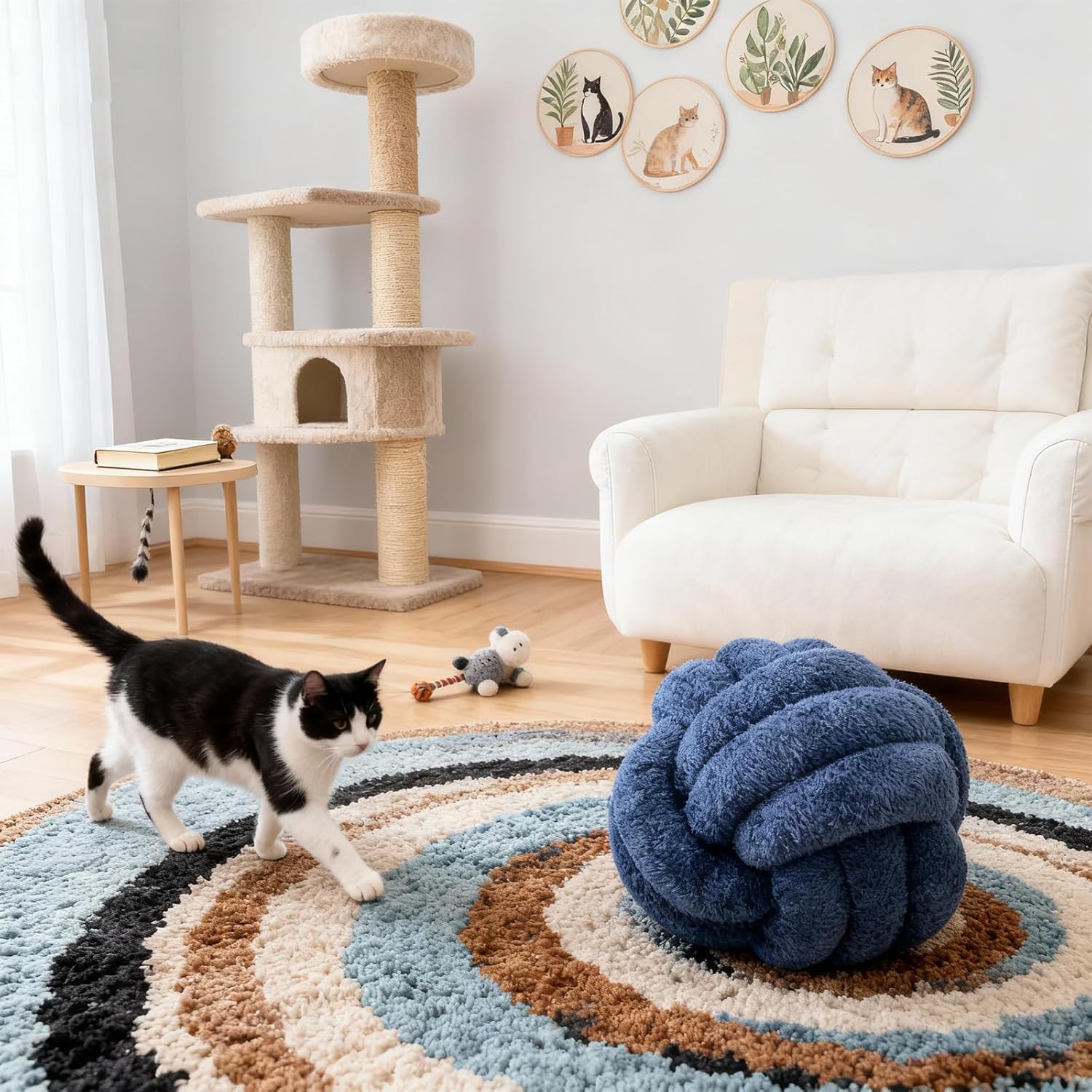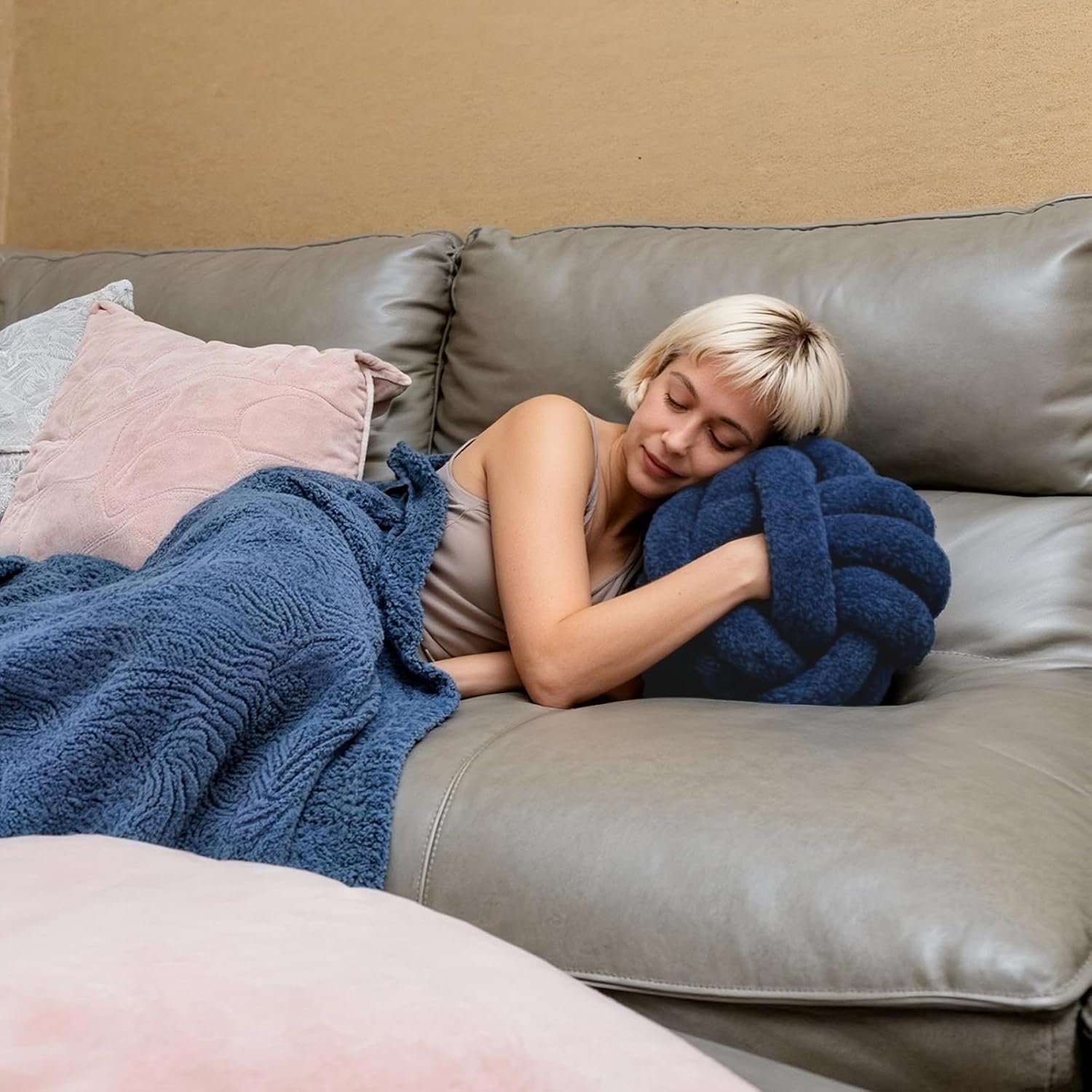 Knot Pillow Ball Plush - Decorative Throw Pillows for Bed Stress Relief, Round Knot Cushion for Sofa Decor Pet Toy, Navy 12 inch