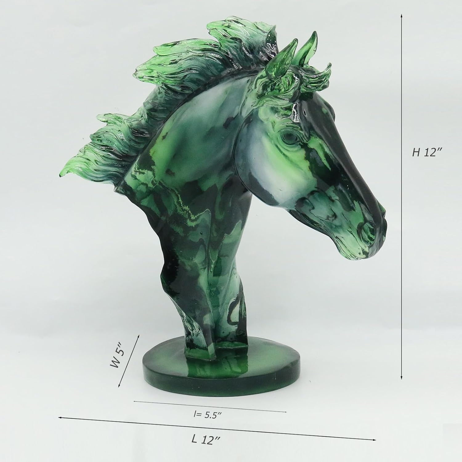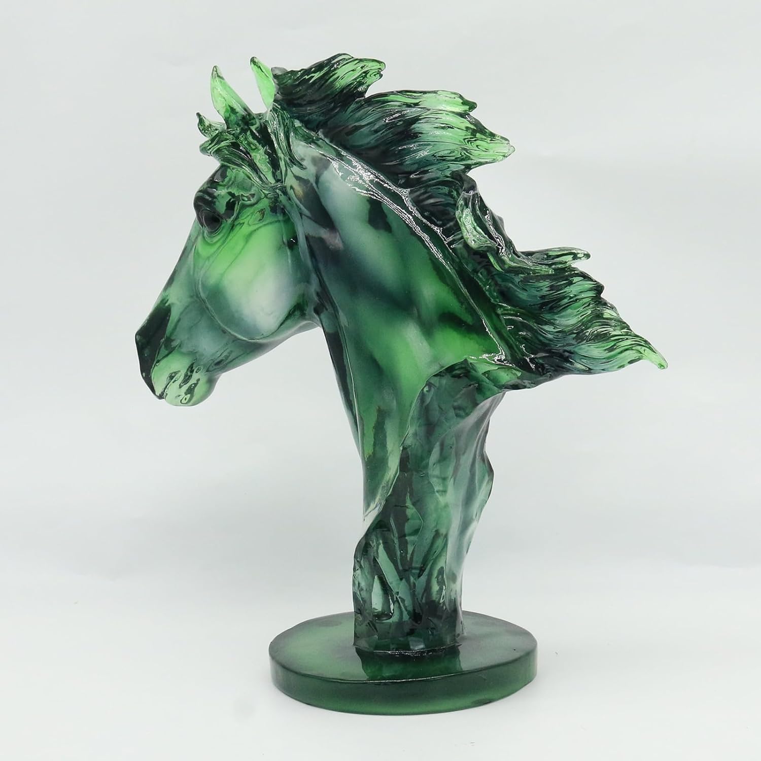 - 【Conversation-Starting Display Piece】:The unique combination of transparent resin and bold green color makes this horse head statue an instant conversation starter. Perfect for adding an artistic focal point to your living space or office