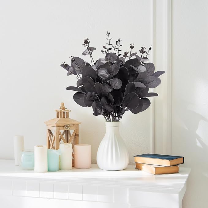 - 120 PCS Black Eucalyptus Stems – Bulk pack includes 120 artificial eucalyptus stems with 3 different leaf and branch styles. Plenty of faux Eucalyptus to decorate your entire home or Halloween party.