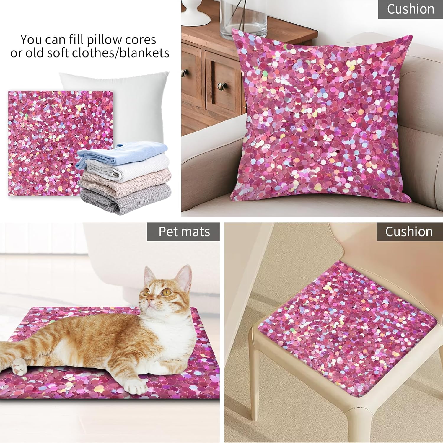 Decorative Throw Pillow Covers 18x18 Inch, Cute Home Decor for Living Room Outdoor Funny Pillowcase Polyester Cushion Case Pink Glitter