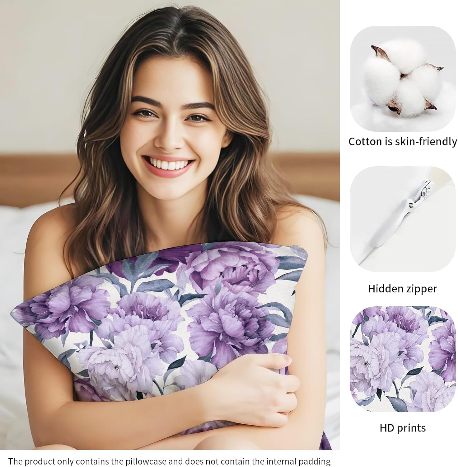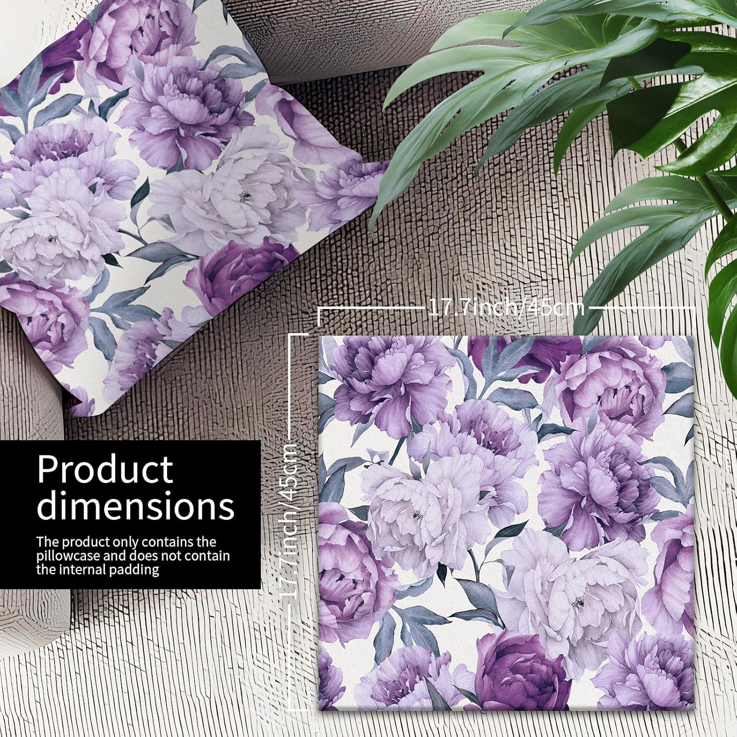 Decorative Throw Pillow Covers 18x18 Inch, Cute Home Decor for Living Room Outdoor Funny Pillowcase Polyester Cushion Case Purple Floral