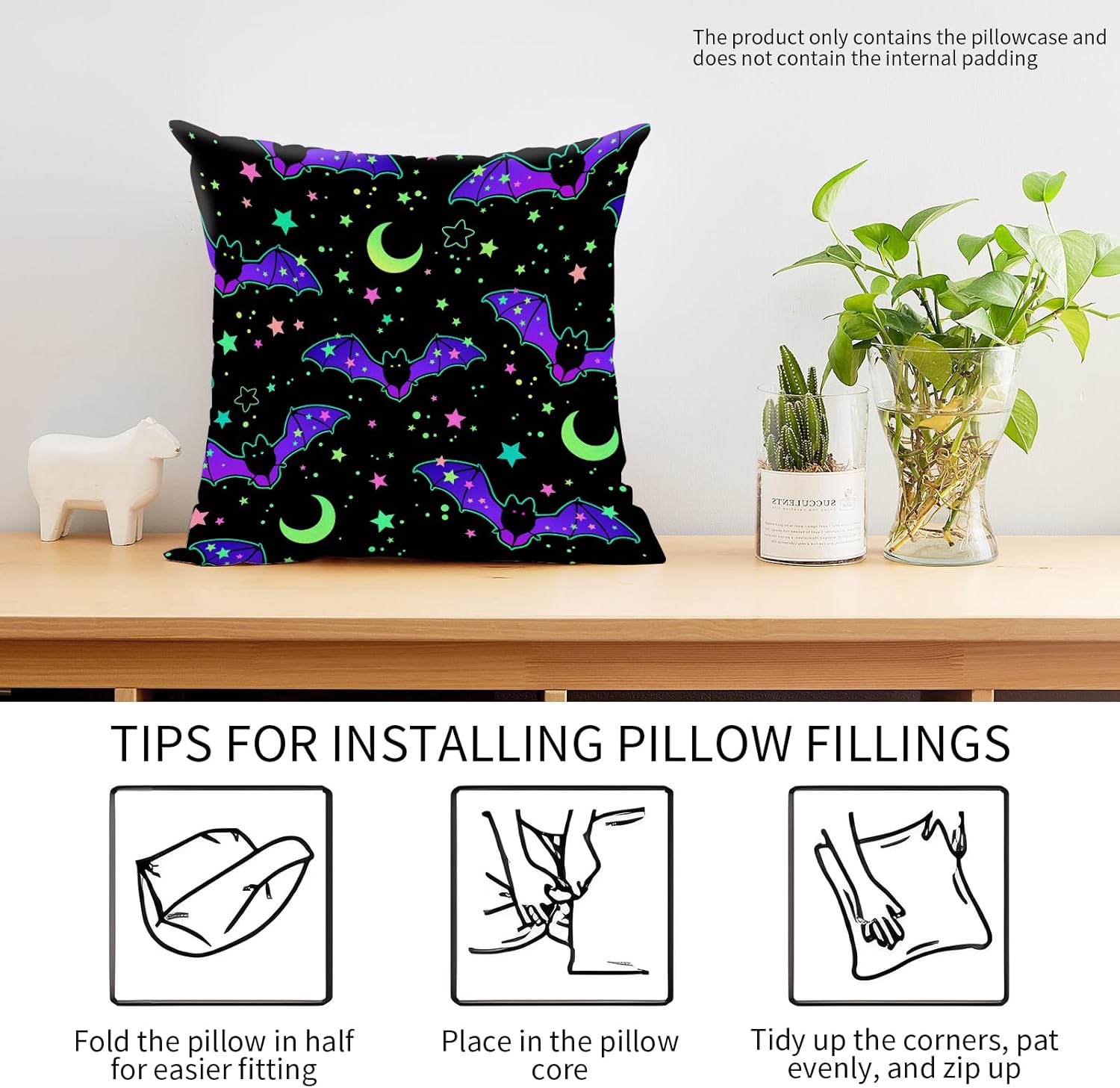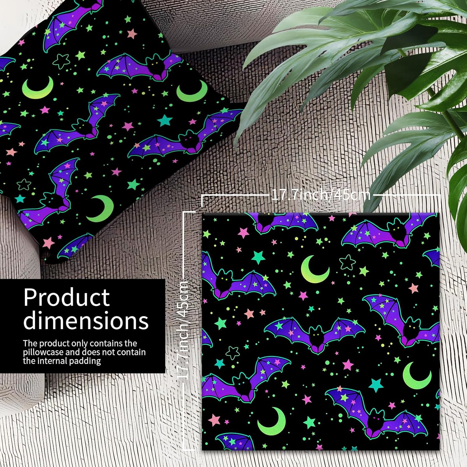 Decorative Throw Pillow Covers 18x18 Inch, Cute Home Decor for Living Room Outdoor Funny Pillowcase Polyester Cushion Case Purple Bat Stars