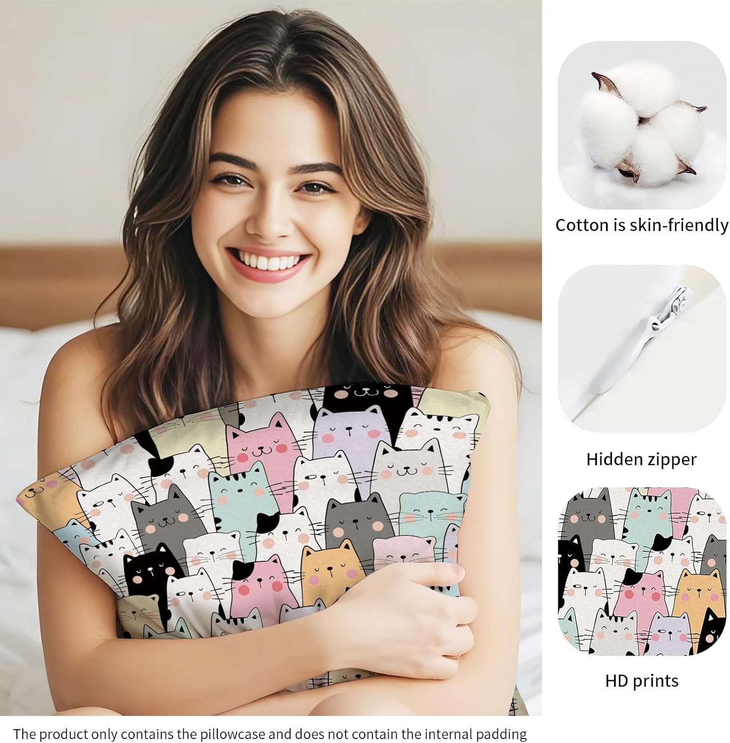 Decorative Throw Pillow Covers 18x18 Inch, Cute Home Decor for Living Room Outdoor Funny Pillowcase Polyester Cushion Case Cat Faces