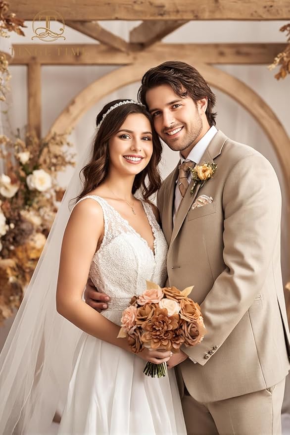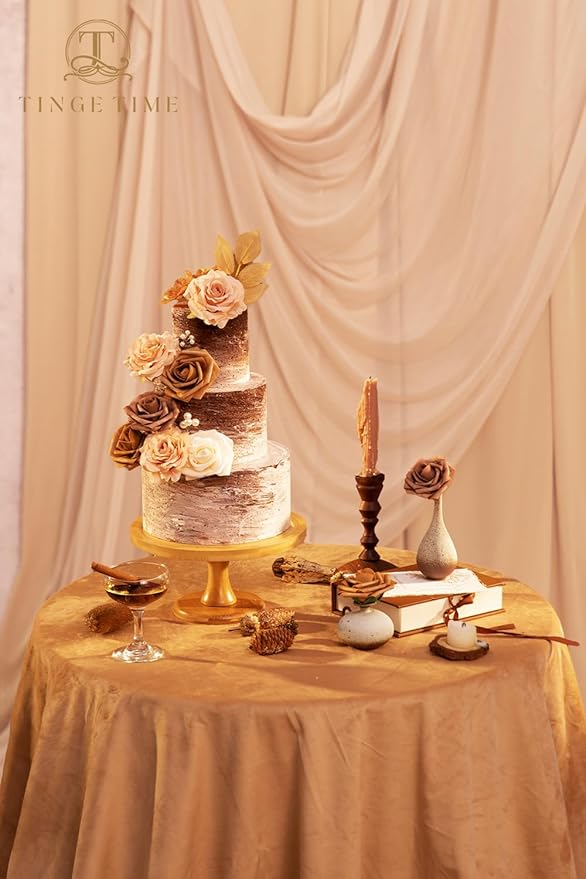 TINGE TIME Artificial Flowers, Fake Rose Silk Dahlia with Stems for DIY Bridal Wedding Bouquets Baby Shower Floral Arrangements Centerpiece Table Party Home Decorations(Dark Milk Tea)