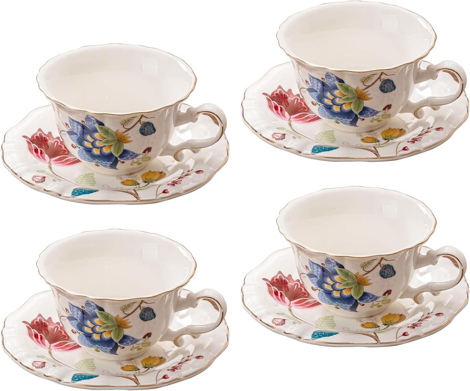 - Includes 4 Teacups and 4 Saucers ;Cup is 2.4" high 3.8" diameter ; Saucer is 5 6"diameter