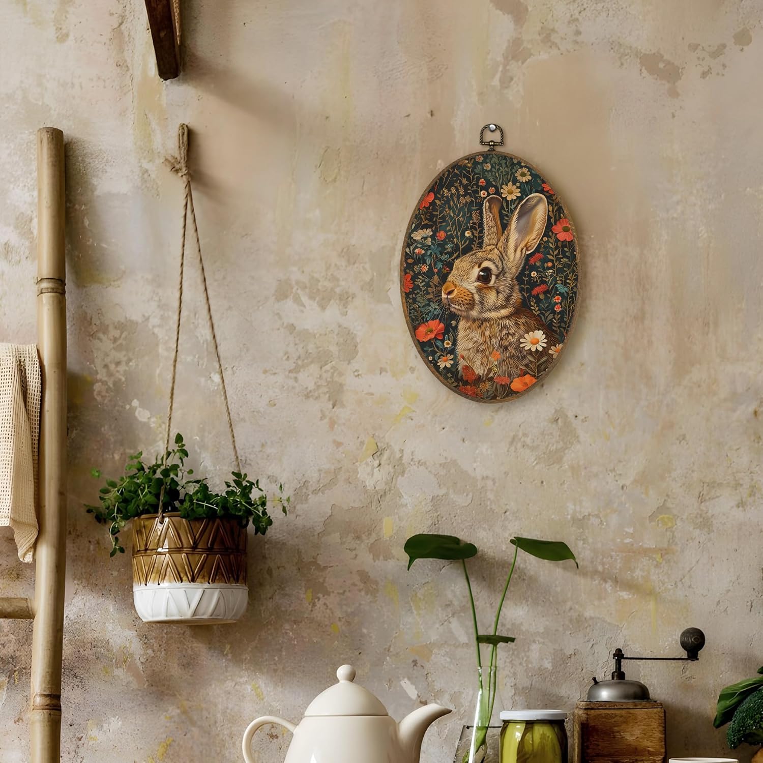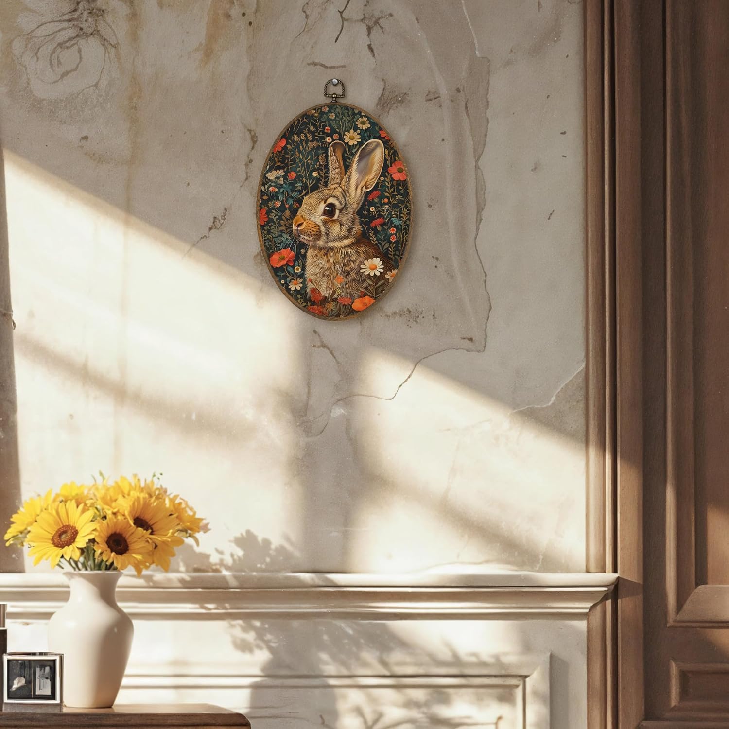 LKETW Vintage William Morris Bunny Floral Oval Wall Art Decor, Cottagecore Rabbit Botanical Floral Oval Canvas Hanging Decor, Retro Bunny Wall Decorations for Home Bedroom Living Room, 8.6x11.4 Inch