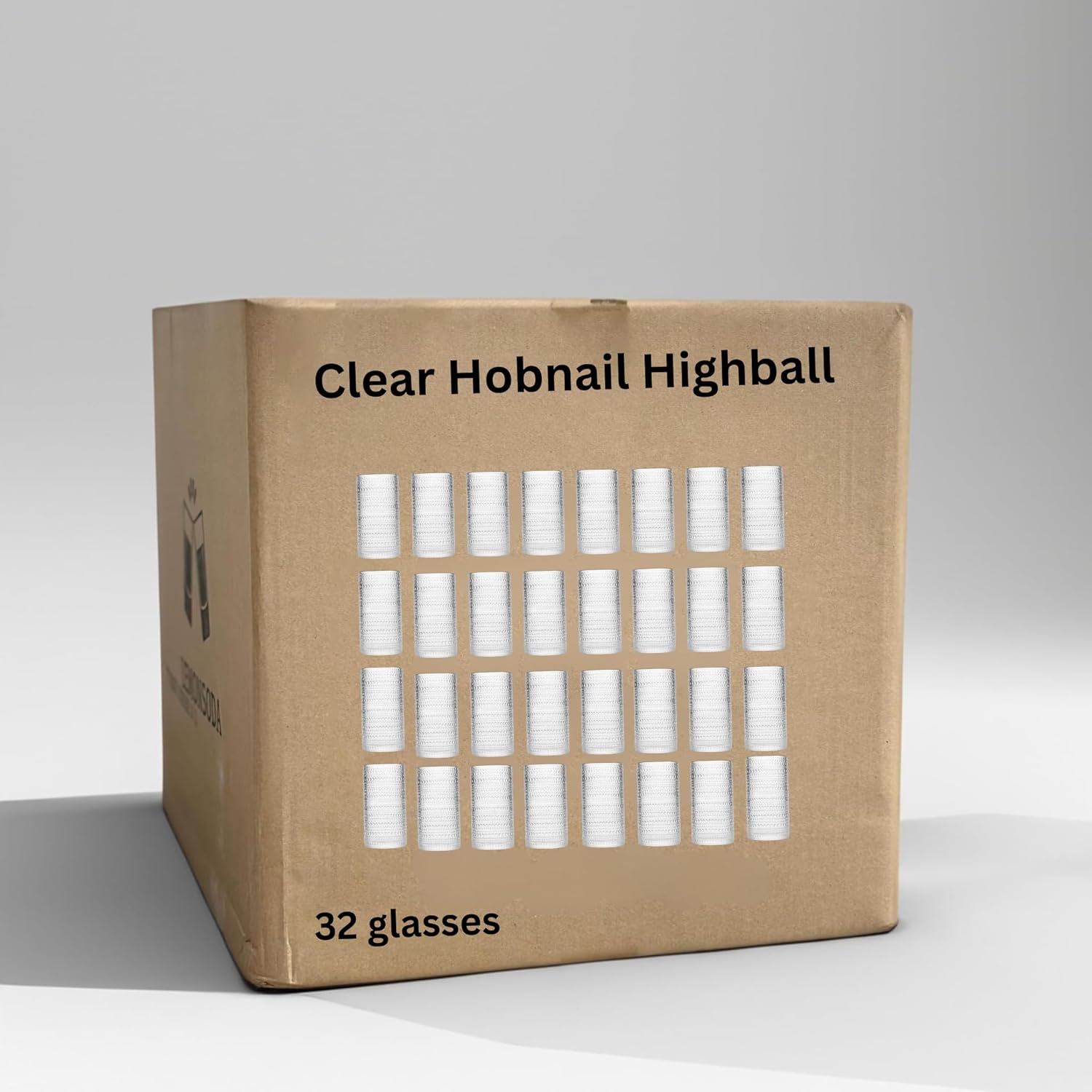 LEMONSODA Vintage Clear Hobnail Drinking Glasses (Highball 15oz, Set of 32) [2225]