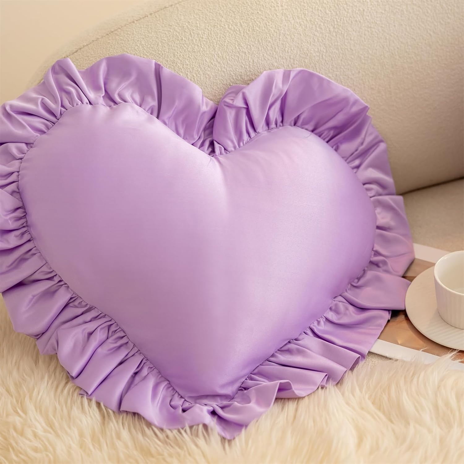 Heart Pillows, Cute Soft Room Decor Ruffled Love Heart Shape Throw Pillows Sofa Cushion Pillow for Living Room Bed Chair Car Floor Home Decoration, Purple
